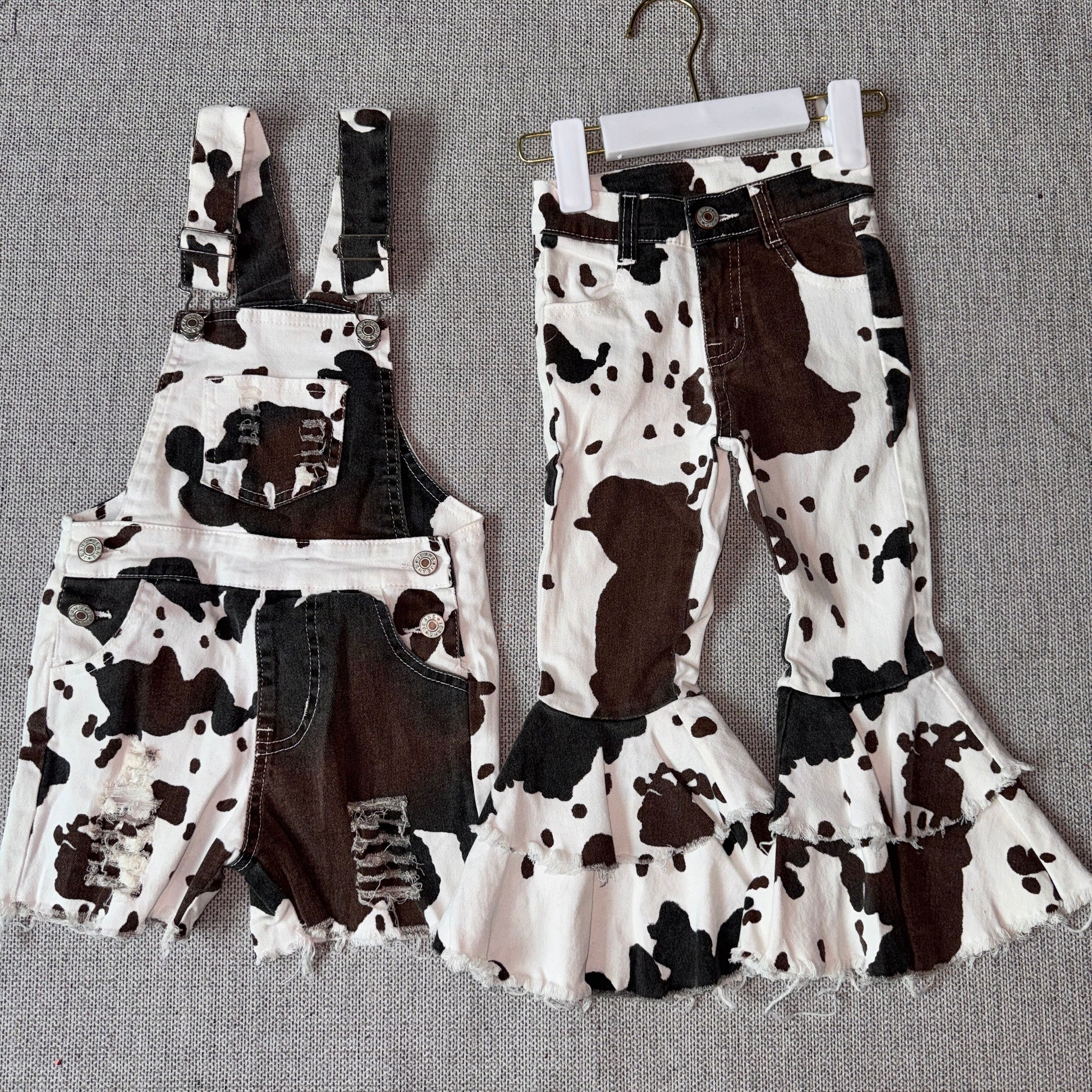 10.28 RST Sibling Baby Girls Western Cow Print Denim Jeans