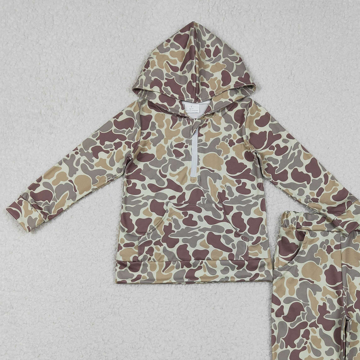 10.28 RTS NO MOQ (In stock)BLP1266 Baby Boys Winter Outfits Baby Boys Khaki Camo Hoodies Pockets Legging Pants Hunting Clothes Set