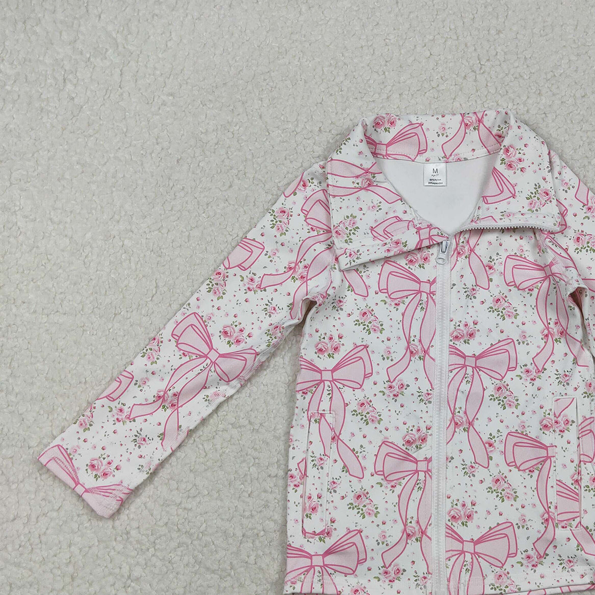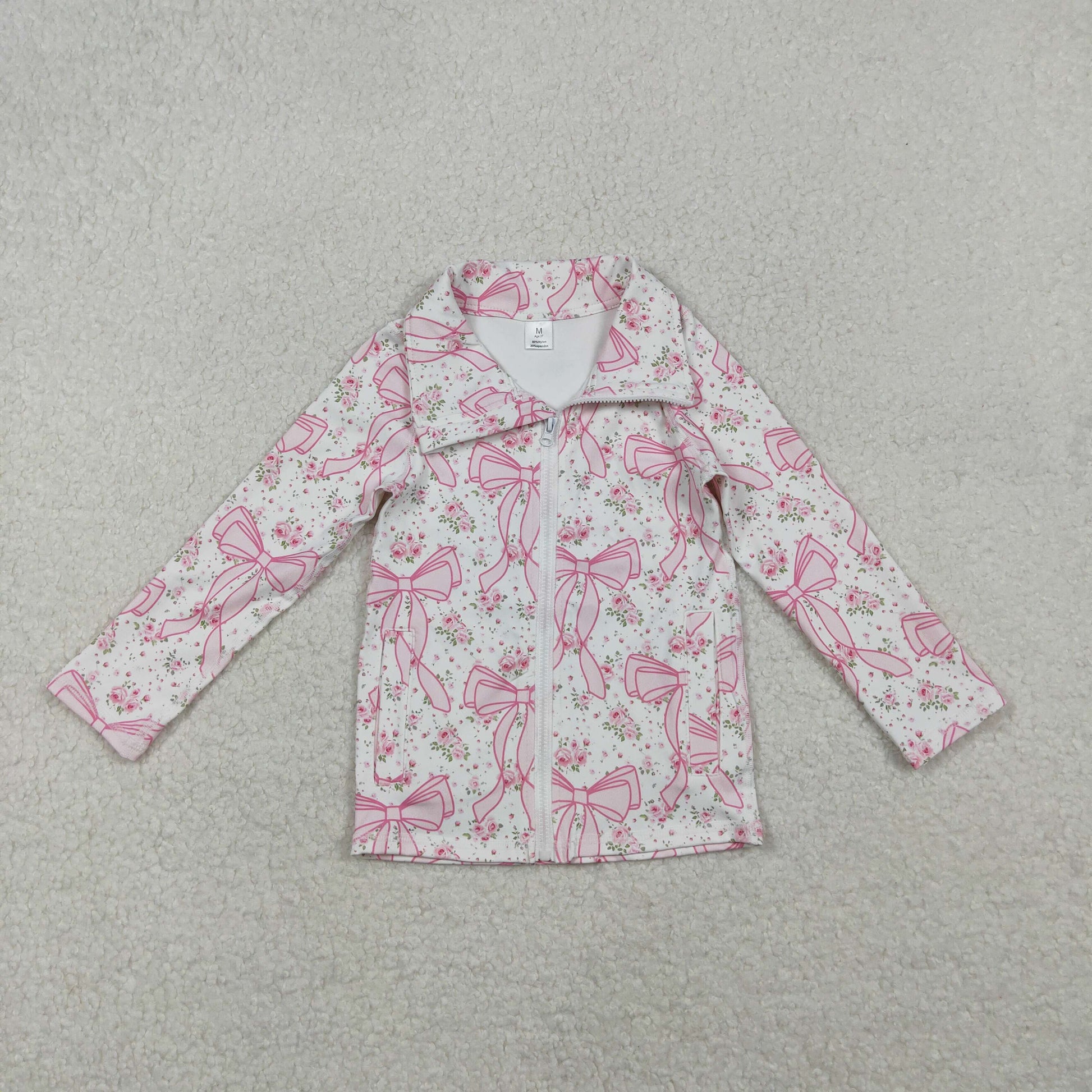 10.28 RTS NO MOQ (In stock)GT1082 Baby Girls Long Sleeve Tops Baby Girls Pink Floral Bows Plaid Zipper Pockets Yoga Active Jackets Top