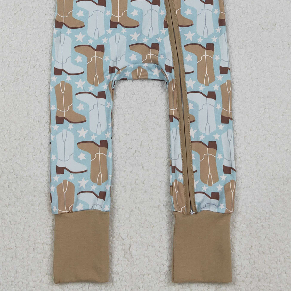 10.28 RTS NO MOQ (In stock)LR2734 Baby Boys Winter Rompers Baby Boys Boots Stars Plaid Western Two Way Zip Convertible Rompers