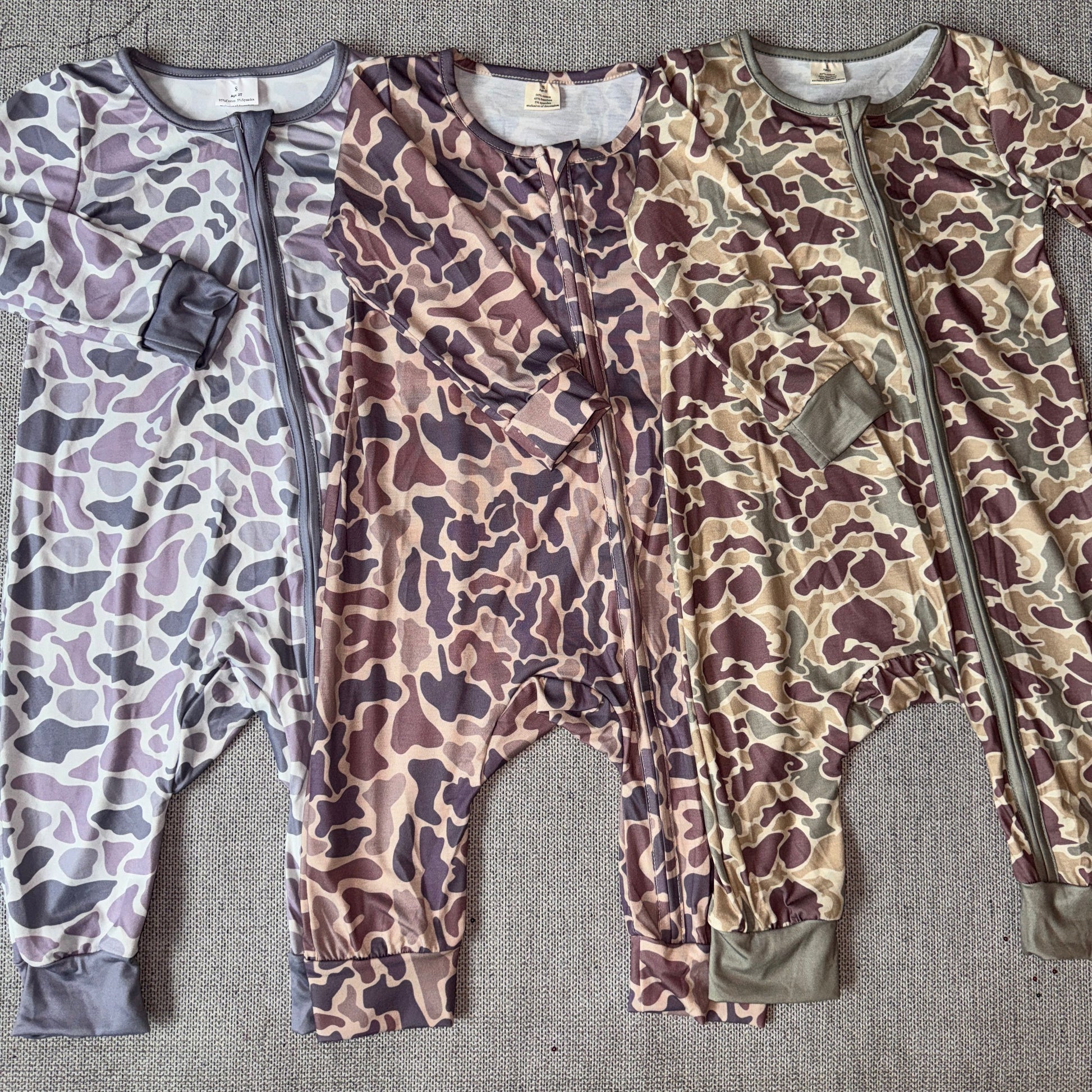 10.28 RTS Sibling Baby Infant Boys Western Camo Long Sleeve Fall Zip Rompers