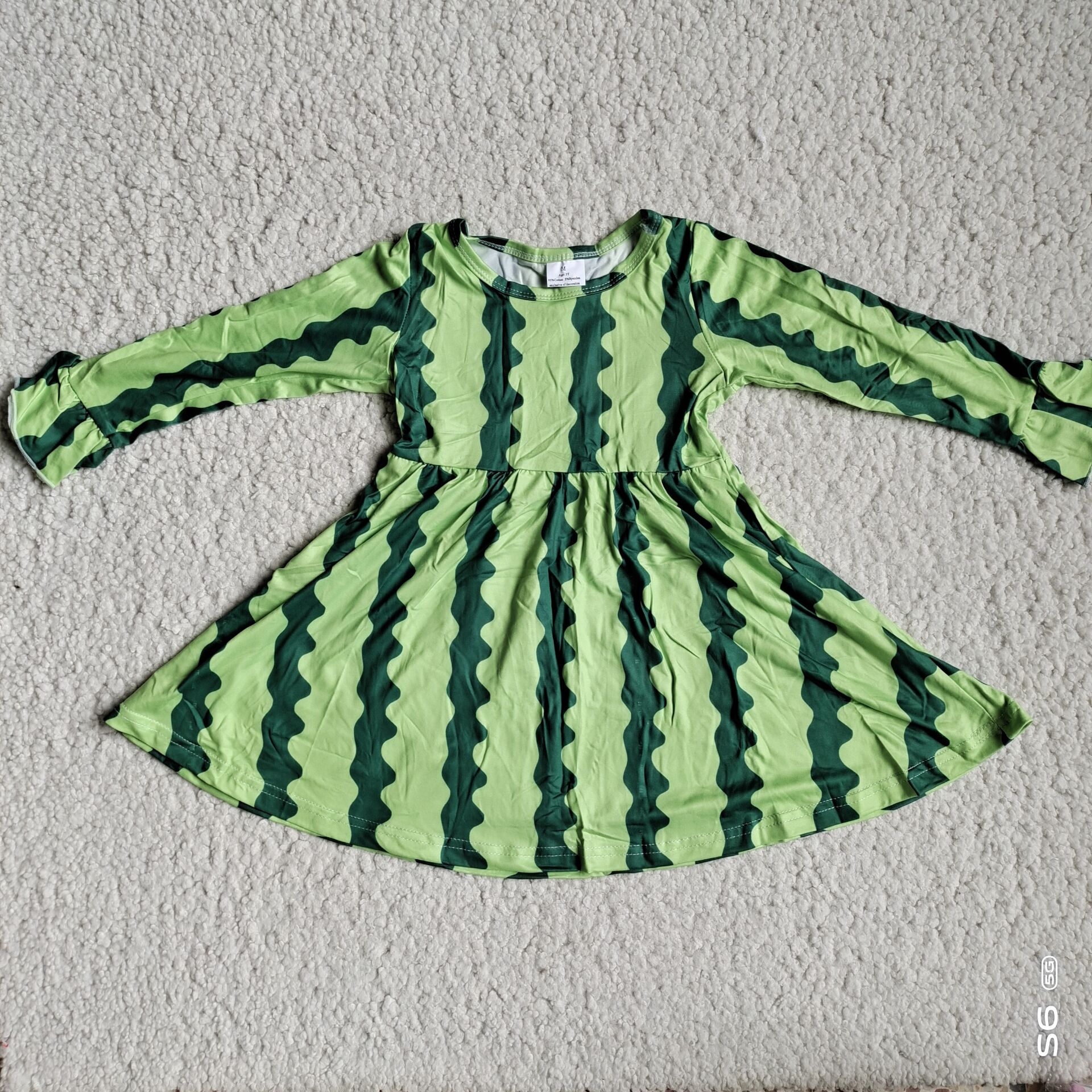 10.3 RTS NO MOQ(In stock)G3-12-5[. Baby Girls Winter Dress Watermelon rind print long-sleeved dress