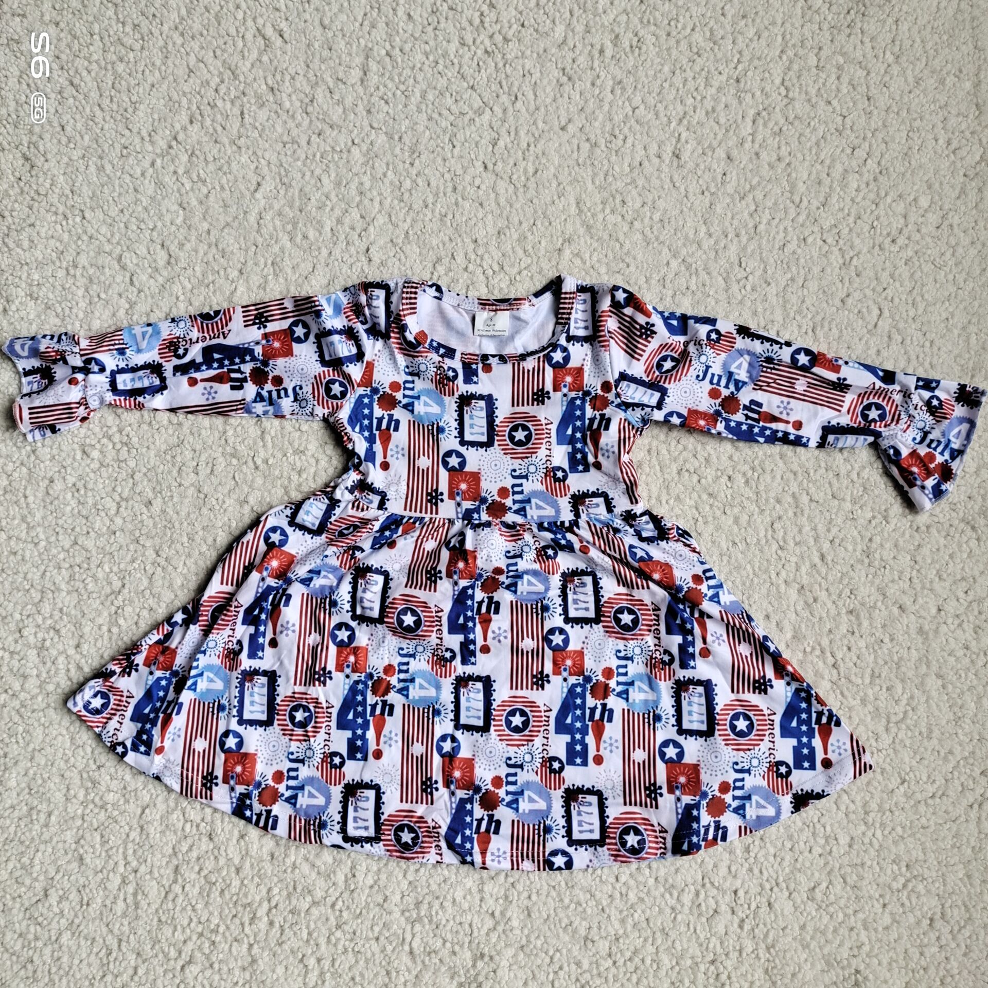 10.3 RTS NO MOQ(In stock)G4-12-1;' Baby Girls Winter Dress Flag roundel long-sleeved dress
