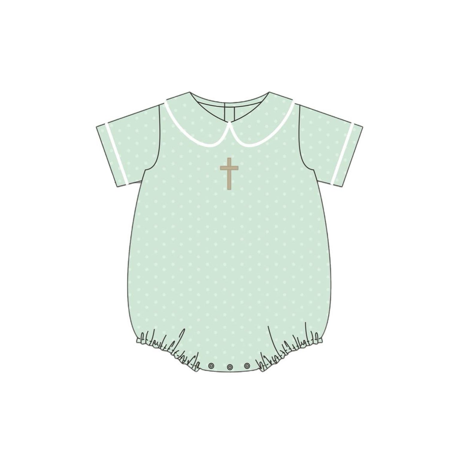 10.3 SR3269 Pre order No Moq Baby Boys Short Sleeve Green Polka Dots Cross Easter Rompers