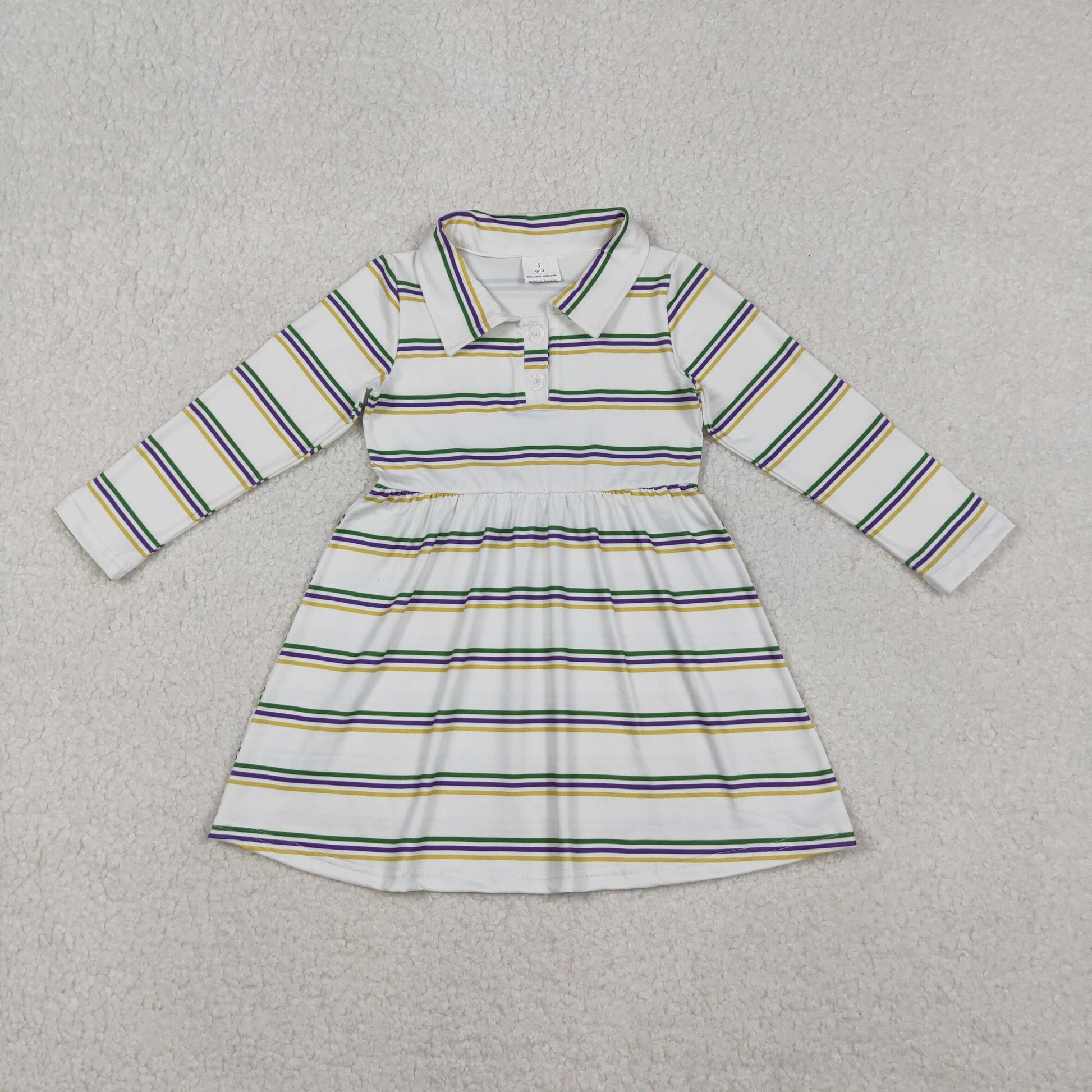 10.30 RTS NO MOQ (In stock)GLD1331 Baby Girls Winter Dress Baby Girls Mardigras Stripes Button Knee Length Dresses