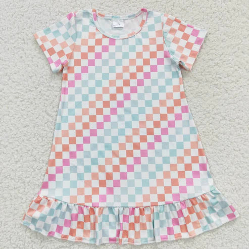 10.31 RST Sibling Baby Girls Flowers Checked Ruffle Knee Length Dresses