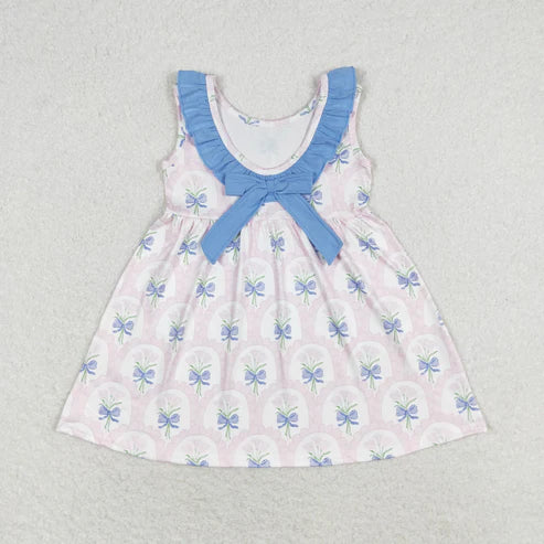10.31 RST Sibling Baby Girls Sleeveless Flowers Back Bows Ruffle Collar Knee Length Dresses