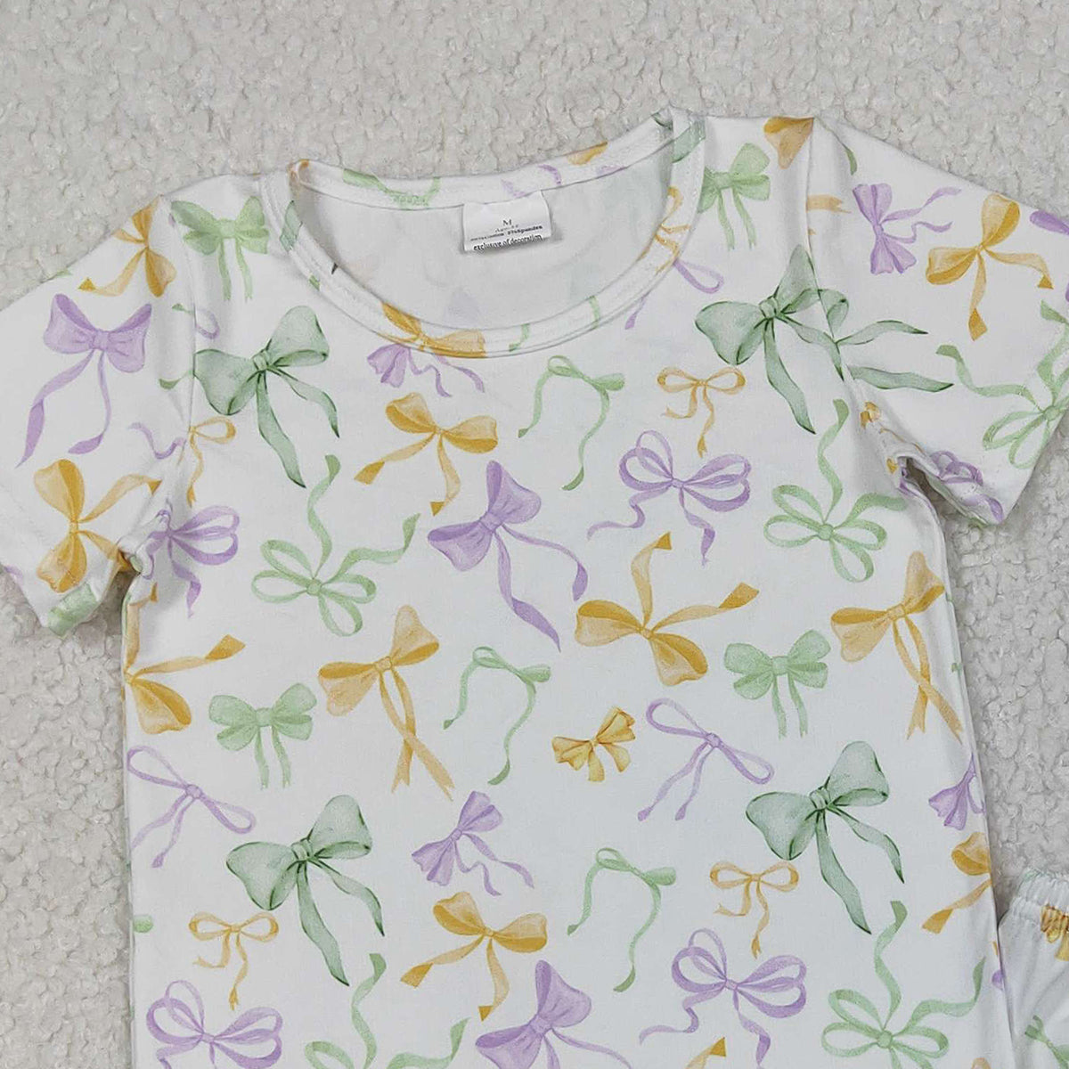 10.31 RTS NO MOQ (In stock)GSSO2717 Baby Boys Summer Outfits Baby Girls Mardigras Bows Plaid Top Ruffle Shorts Pajamas Sets