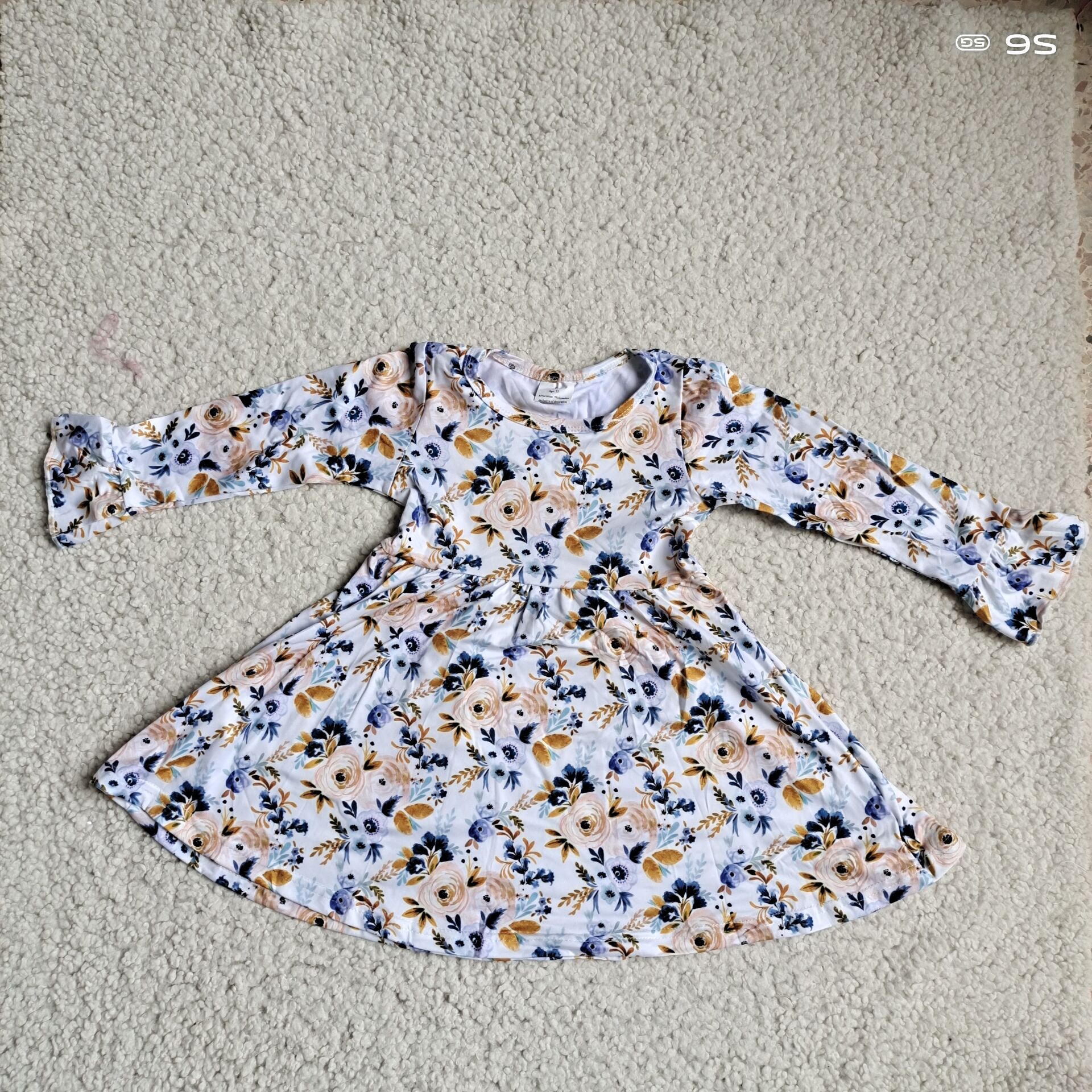 10.4 RTS NO MOQ(In stock)G3-12-1/.Baby Girls Winter Dress Yellow blue floral white long-sleeved dress