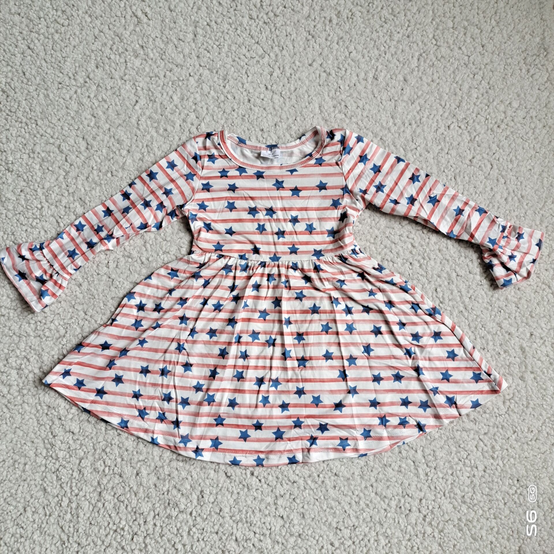 10.4 RTS NO MOQ(In stock)G3-12-2- Baby Girls Winter Dress Five-pointed star orange striped long-sleeved dress