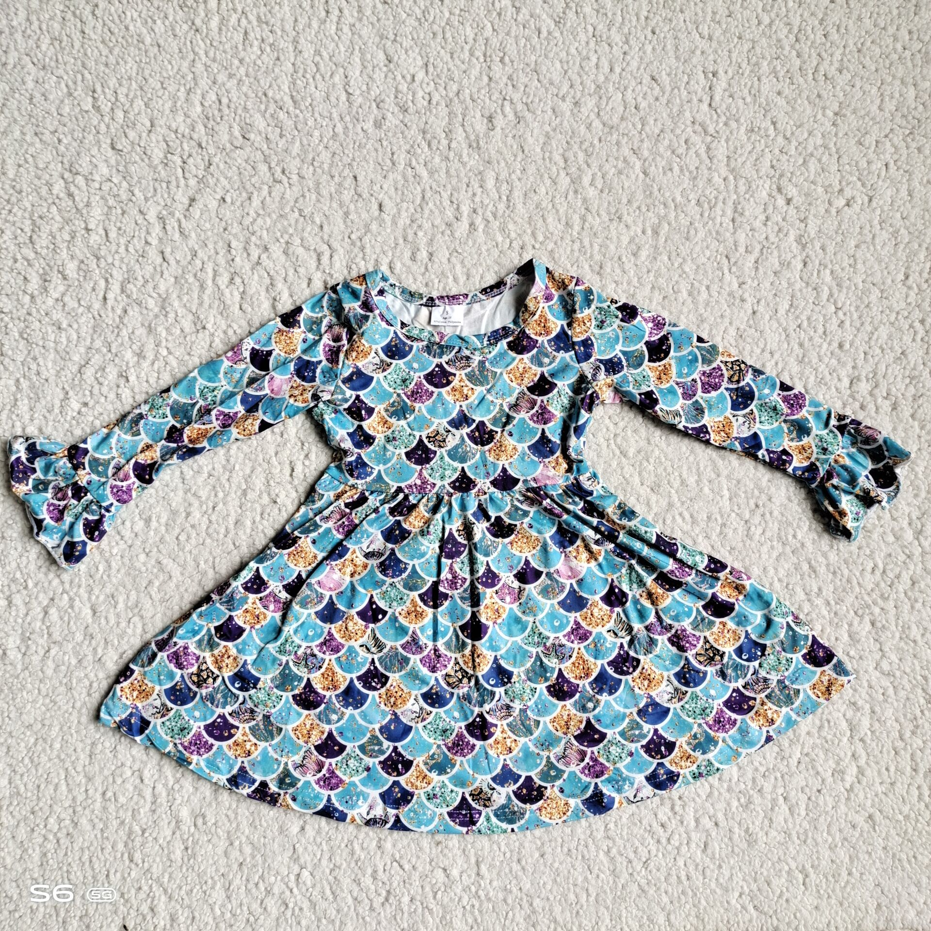 10.4 RTS NO MOQ(In stock)G3-12-2/. Baby Girls Winter Dress Purple and blue sequined fish scale long-sleeved dress