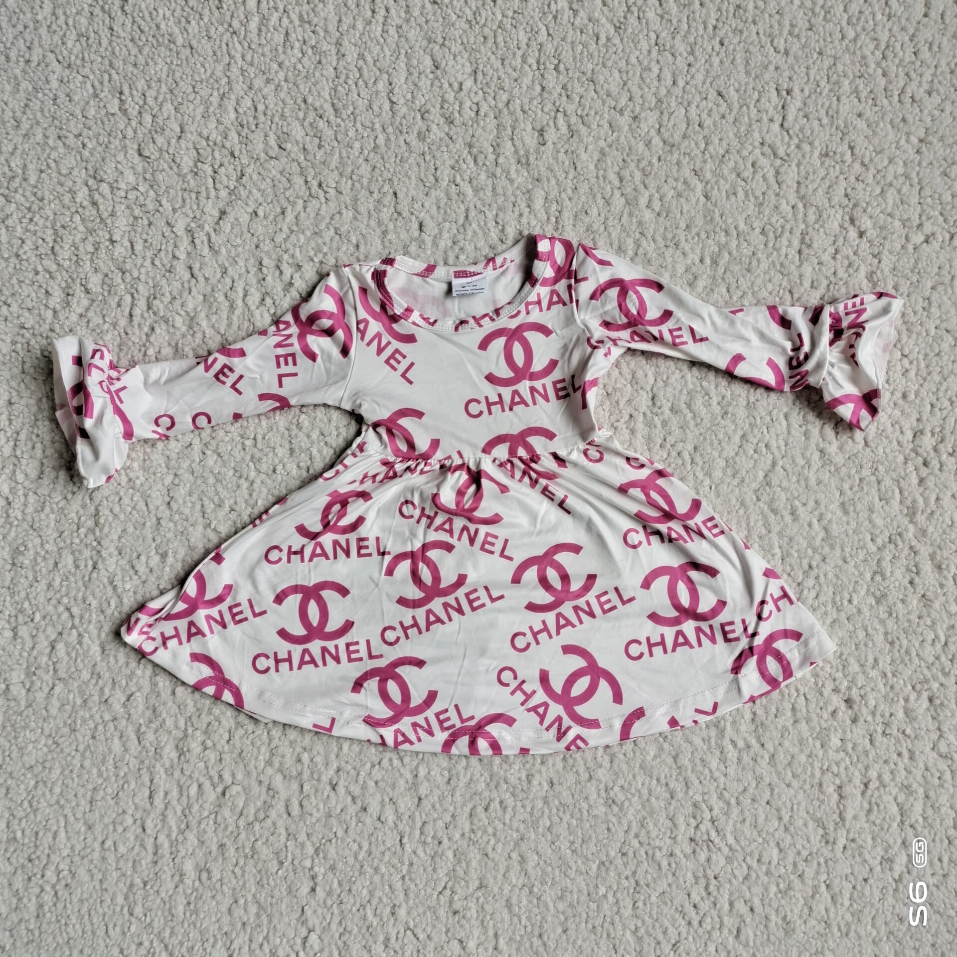 10.4 RTS NO MOQ(In stock)G3-8-8*;/ Baby Girls Winter Dress Rose pink letter long-sleeved dress