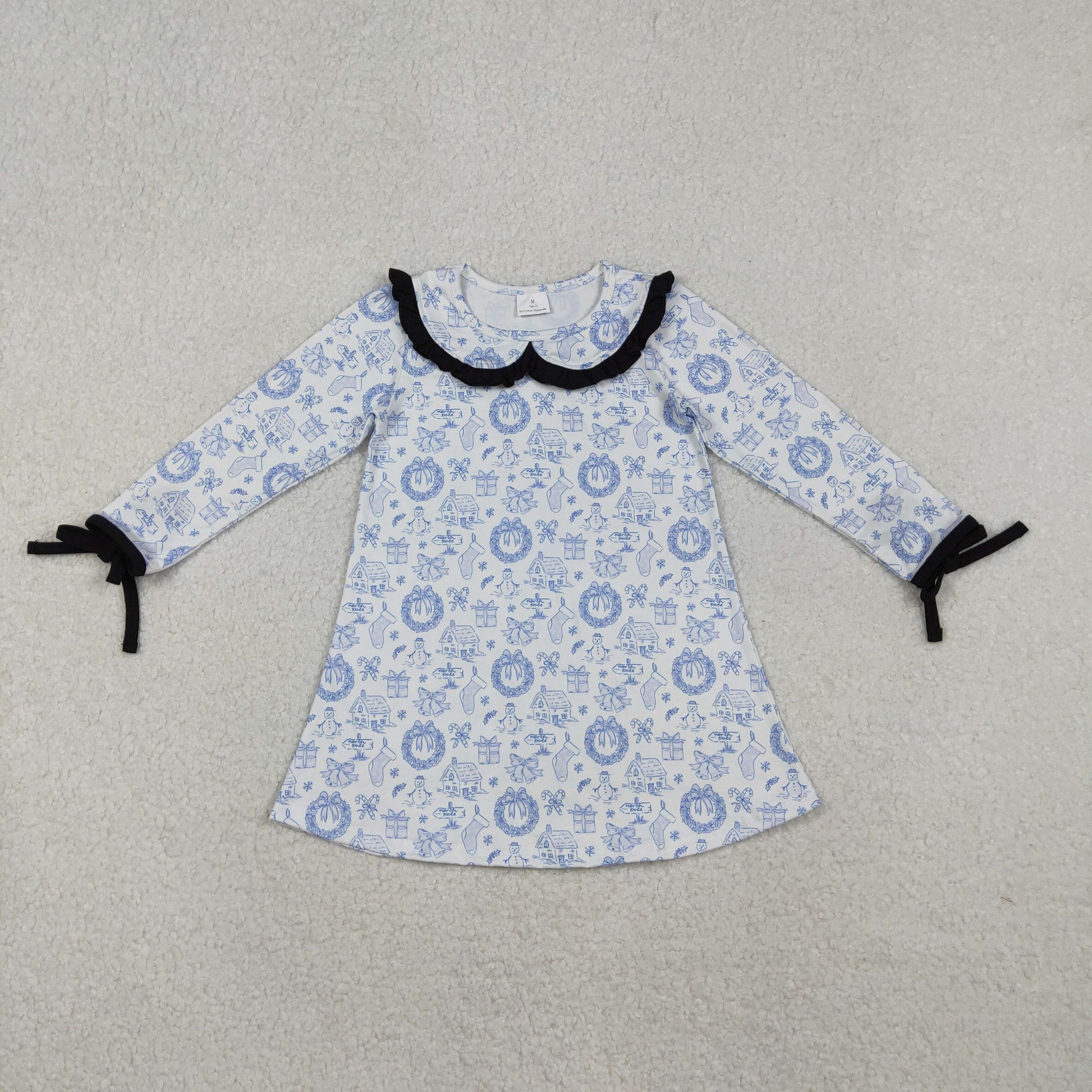 11.1 RTS NO MOQ (In stock)GLD1346 Baby Girls Winter Dress Baby Girls Snowmen Holly Christmas Collar Knee Length Dresses