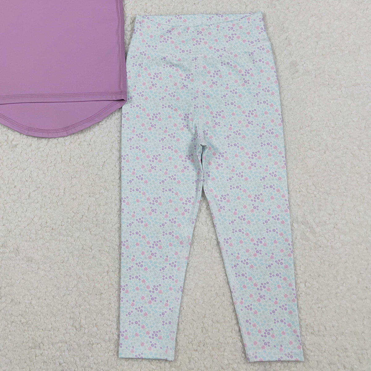 11.1 RTS NO MOQ (In stock)GSPO2067 Baby Girls Lavender Short Sleeve Top Floral Legging Pants Yoga Active Clothes Set