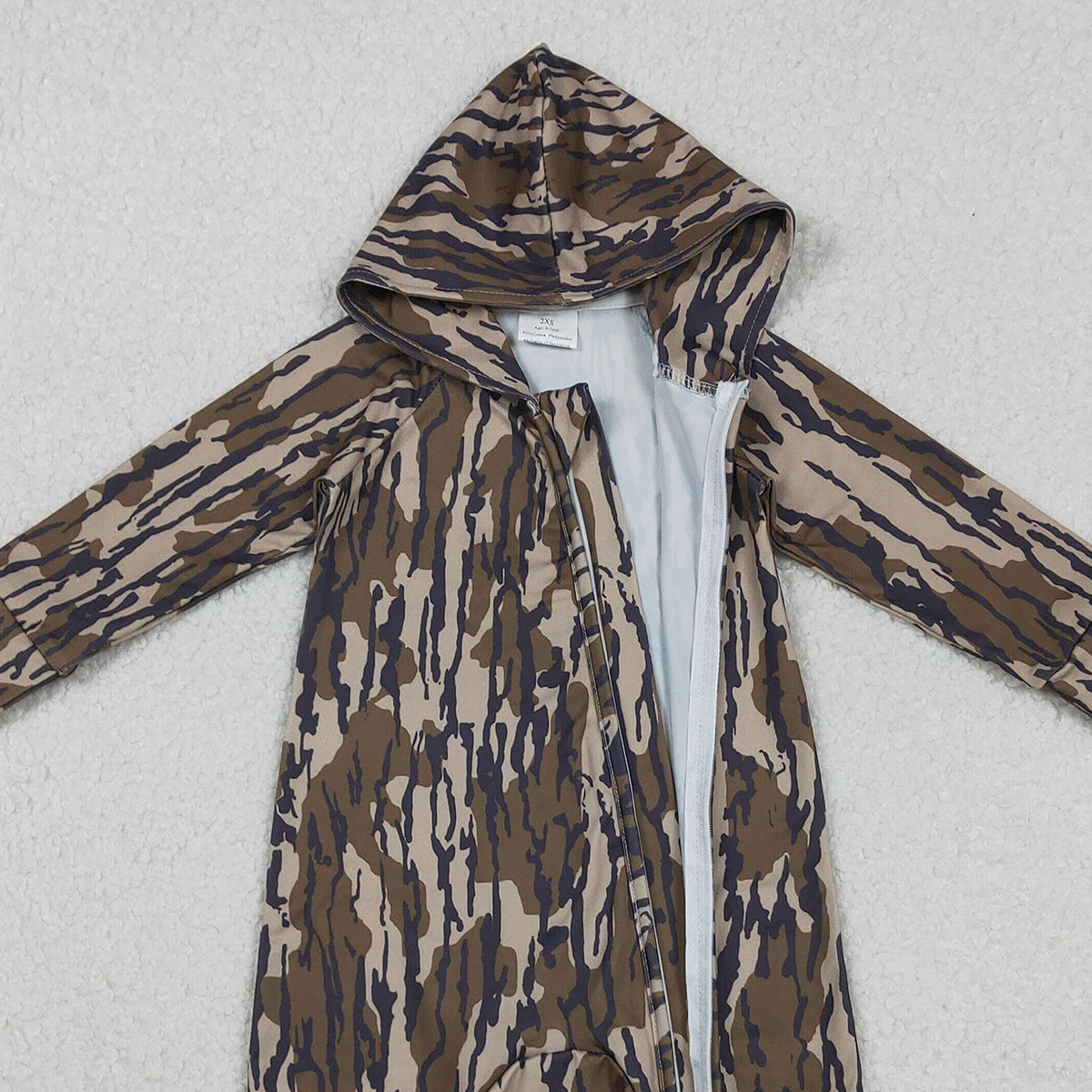 11.12 RTS NO MOQ (In stock)LR2814 Baby Boys Southern Olive Camo Hoodie Two Way Zip Convertible Rompers