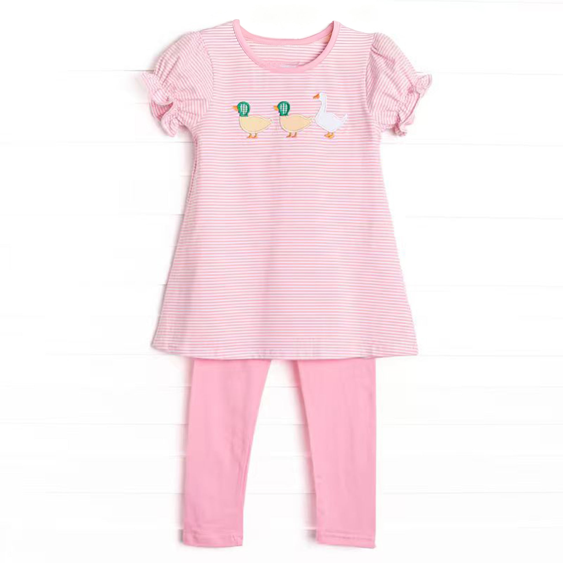 11.13 GSPO2202 Pre order No Moq Baby Girls Pink Stripe Ducks Gooses Tunic Leggings Clothes Sets