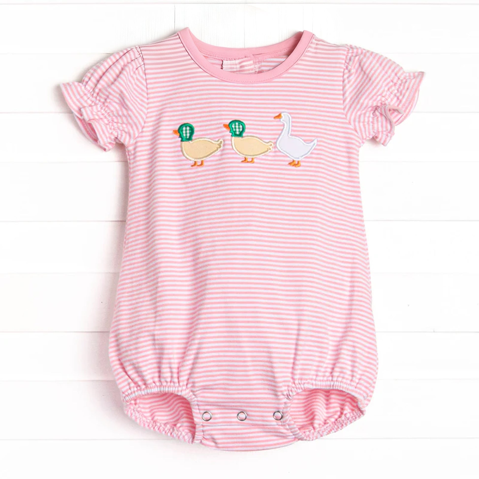 11.13 SR3539 Pre Order No moq Baby Girls Pink Stripe Ducks Goose Ruffle Rompers