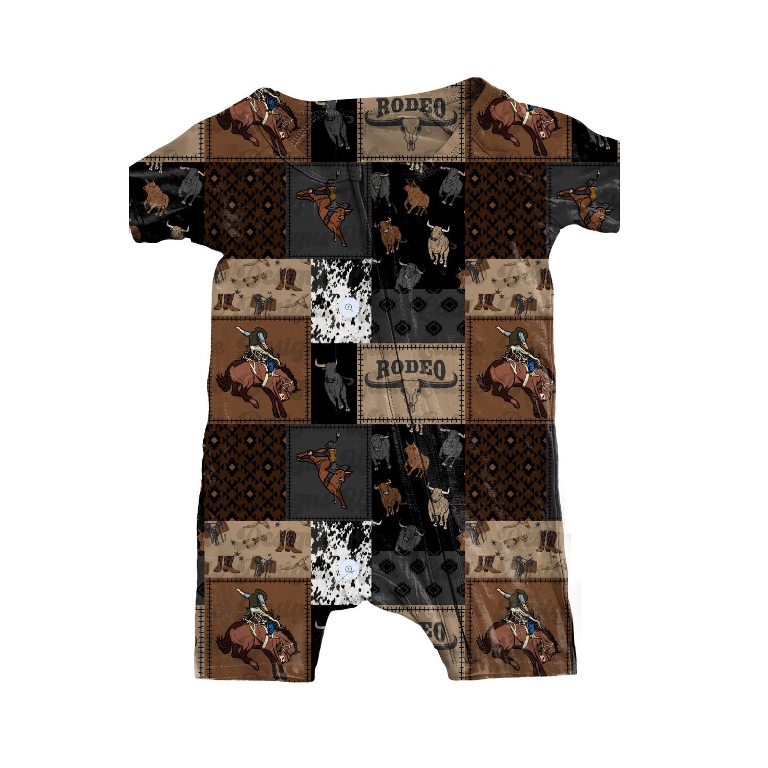 11.13 SR3545 Pre Order No moq Baby Boys Horse Rodeos Western Zipper Rompers