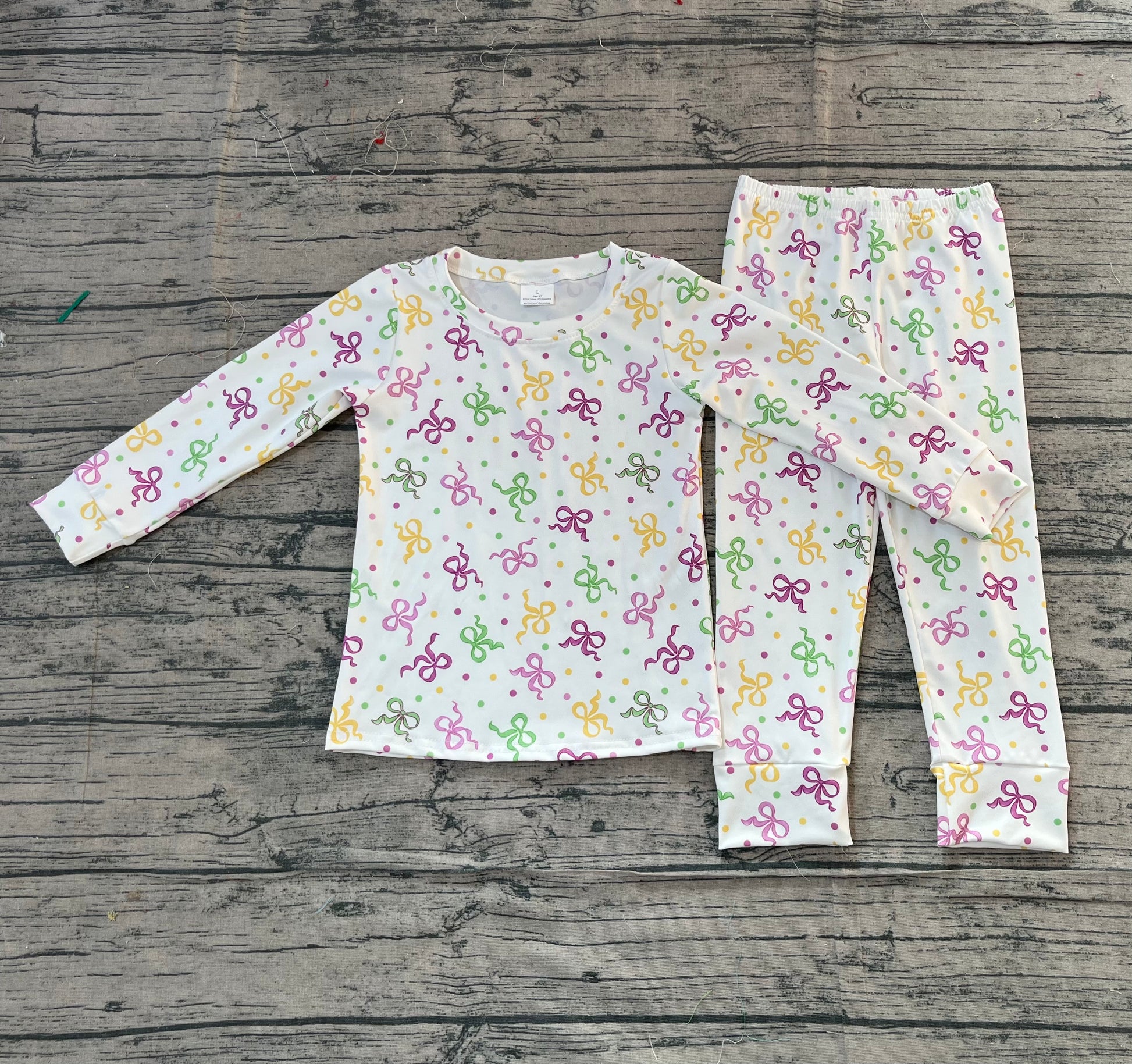 11.14 GLP2920 Sample No Moq Baby Girls Mardigras Bows Polka Dots Top Pants Pajamas Sets