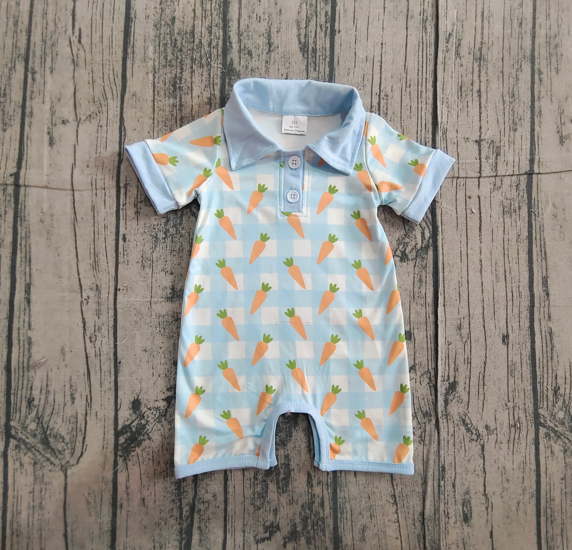 11.15 SR3254 Sample No Moq Baby Boys Blue Checked Carrots Easter Button Shorts Rompers
