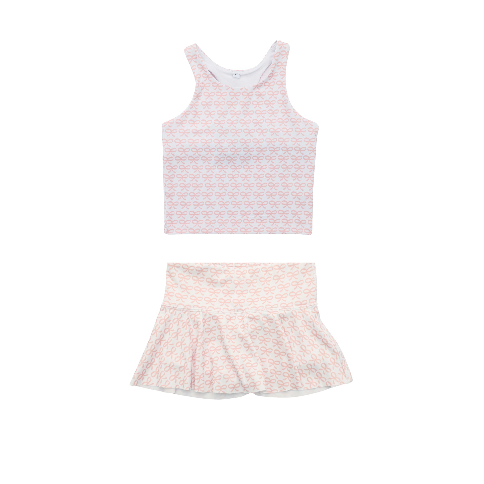 11.18 GSD3137 Pre order No Moq Yoga fabric Baby Girls Peach Bows Vests Top Pleated Skirt Shorts Yoga Clothes Sets