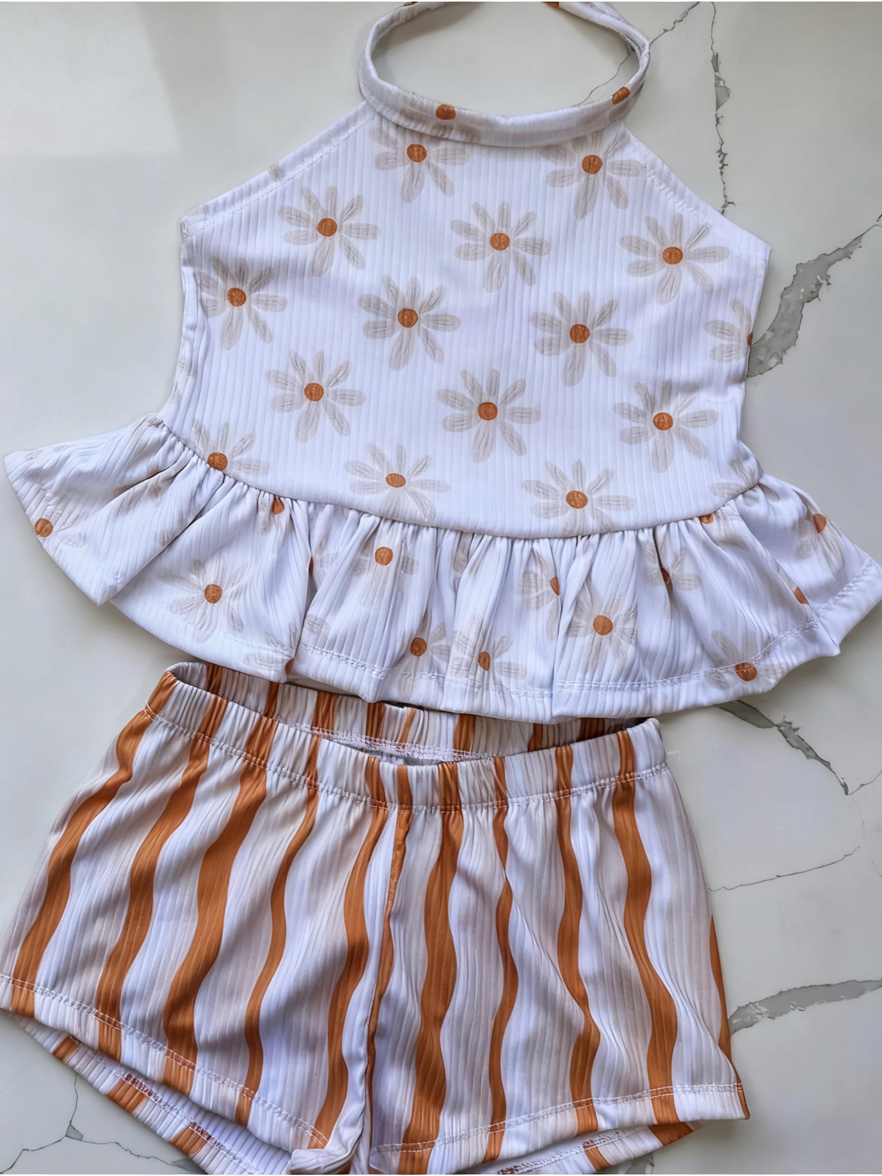 11.18 GSSO2888 Pre order No Moq Baby Girls Strap Flowers Tunic Stripes Short Clothes Sets