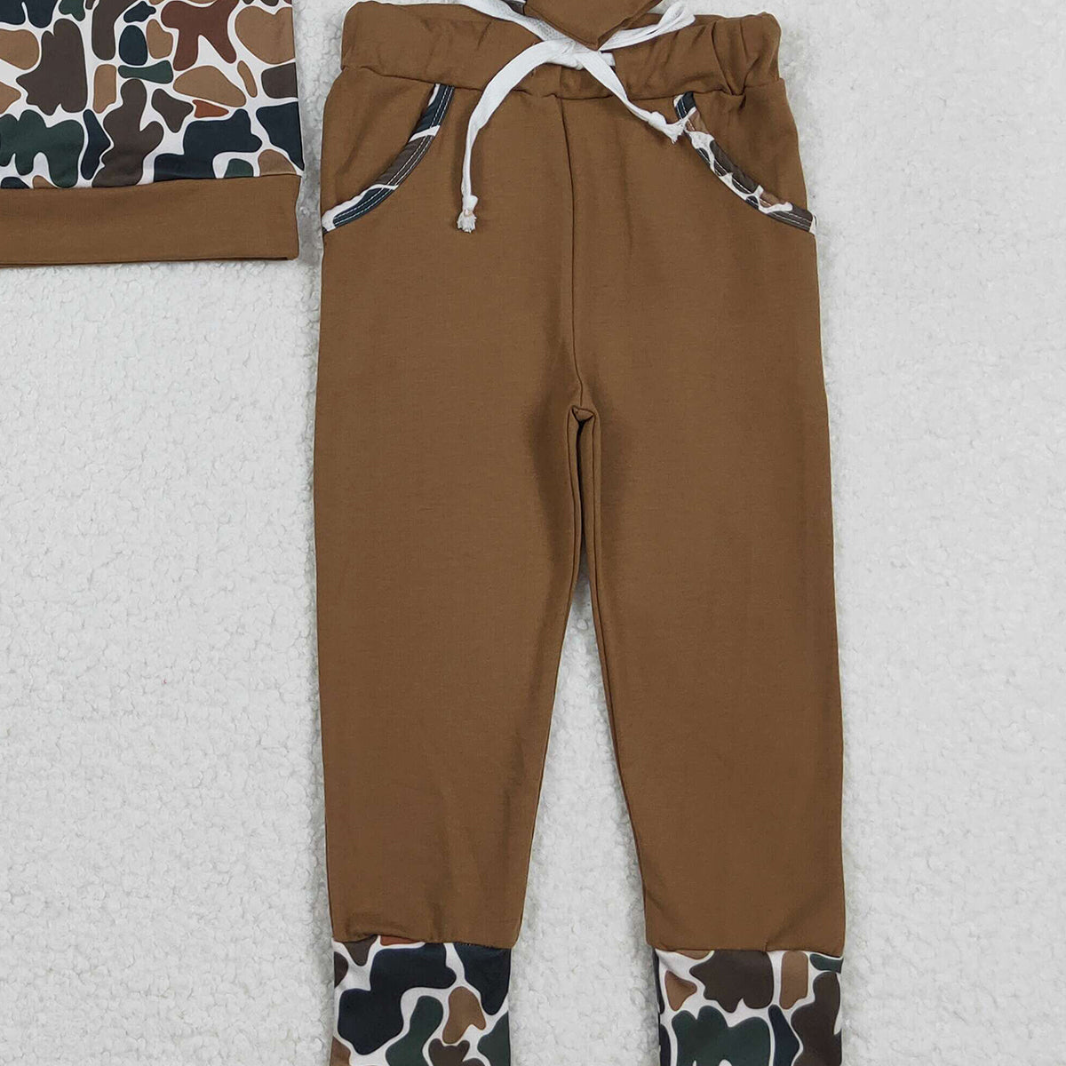 11.18 RTS NO MOQ (In stock)BLP1337 Embroidery Mama's Boy Baby Boys Dark Brown Camo Pockets Jogger Clothes Sets