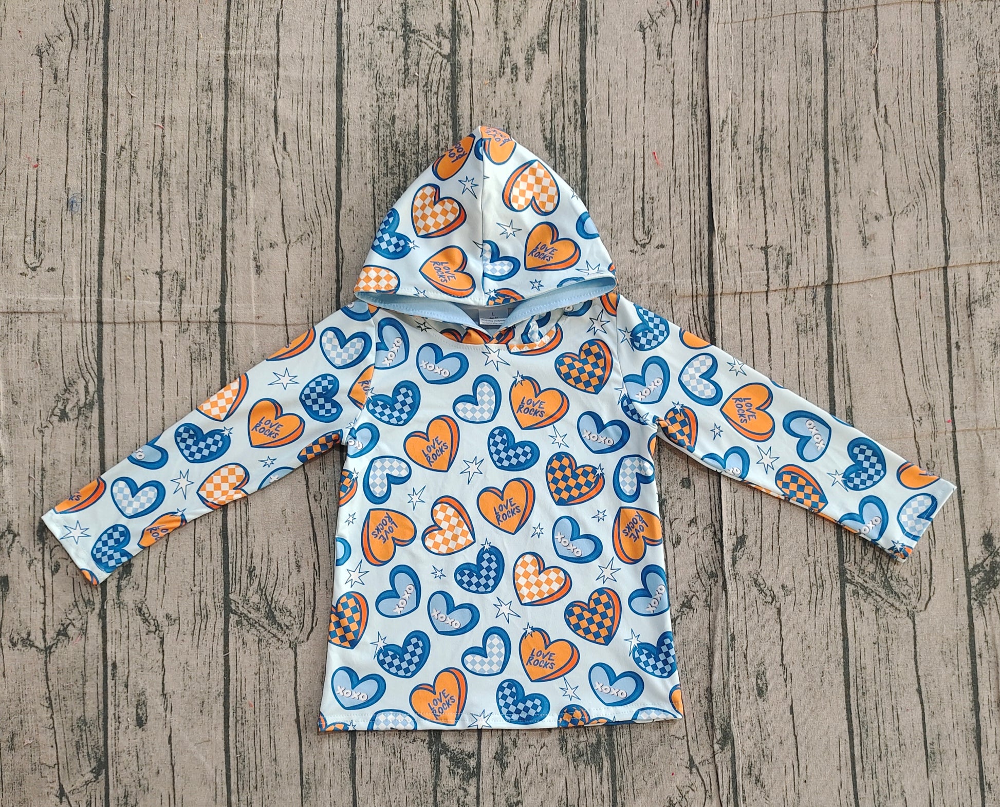 11.20 BT1510 Sample No Moq Baby Boys Blue Orange Hearts Stars Valentine Hoodies Top