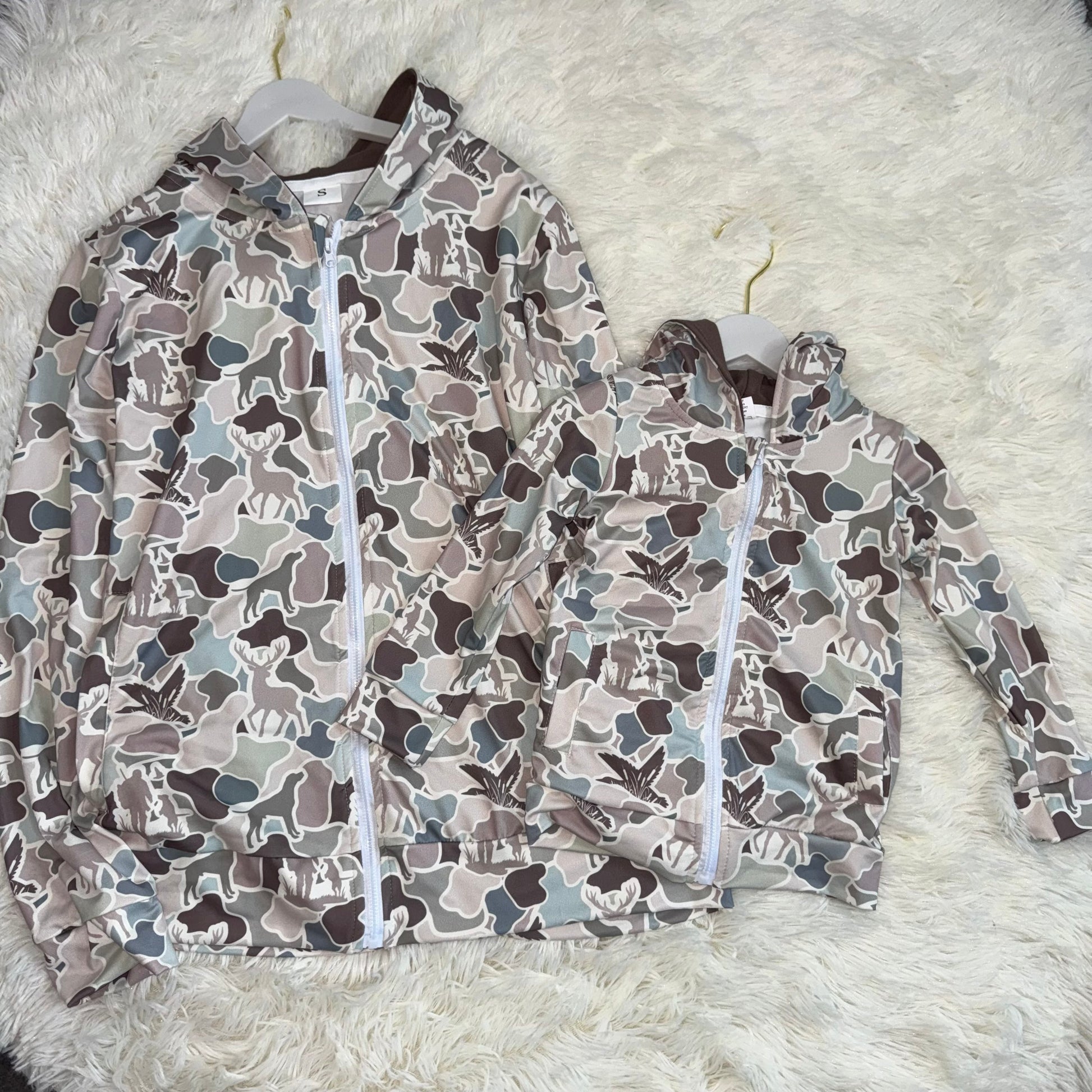 11.21 RTS Adult Men Baby Boys Ducks Deer Dogs Camo Pockets Zipper Hunting Hoodie Jackets Top