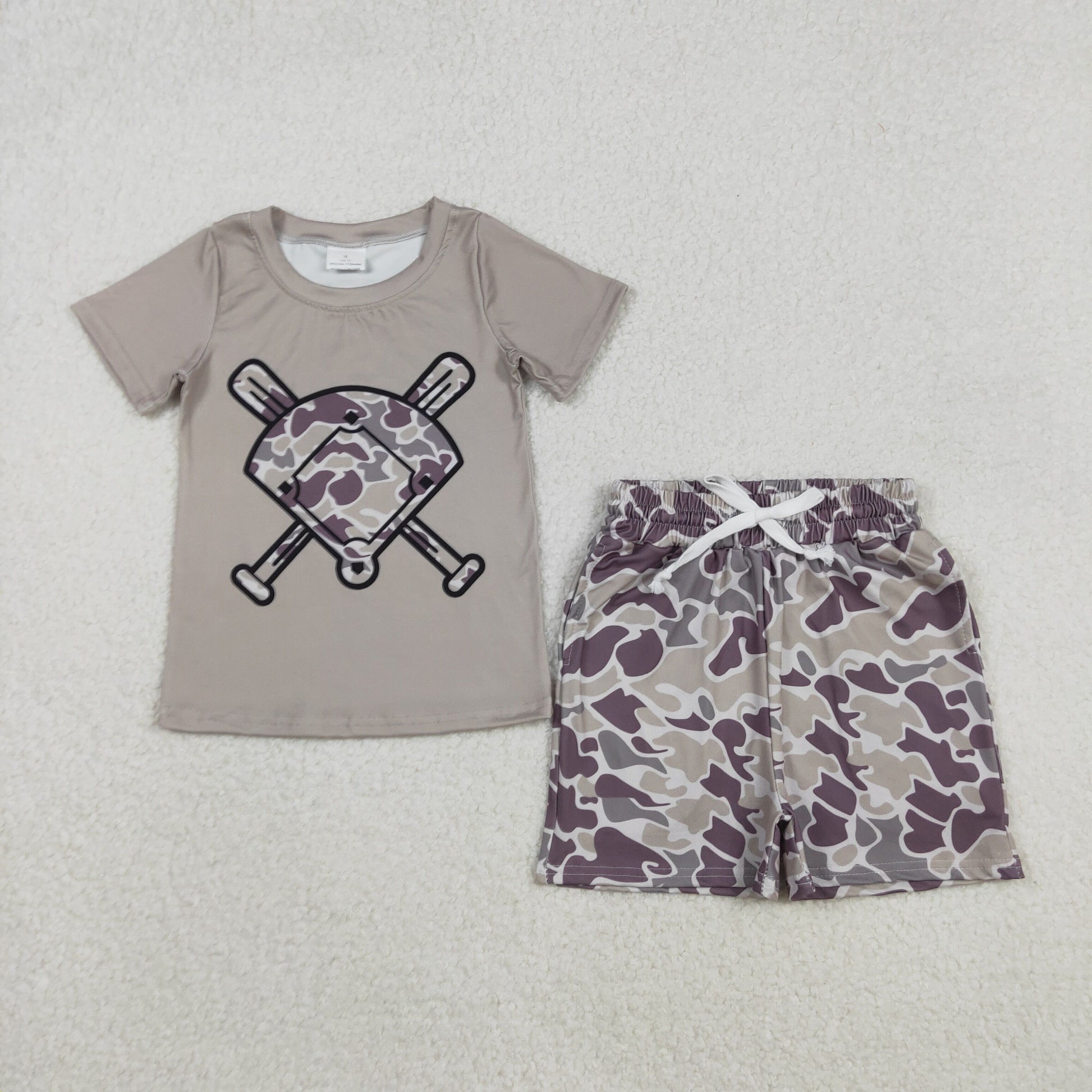 11.21 RTS NO MOQ (In stock)BT1417+SS0733 Baby Boys Grey Camo Baseball Short Sleeve Team T-shirts Shorts Clothes