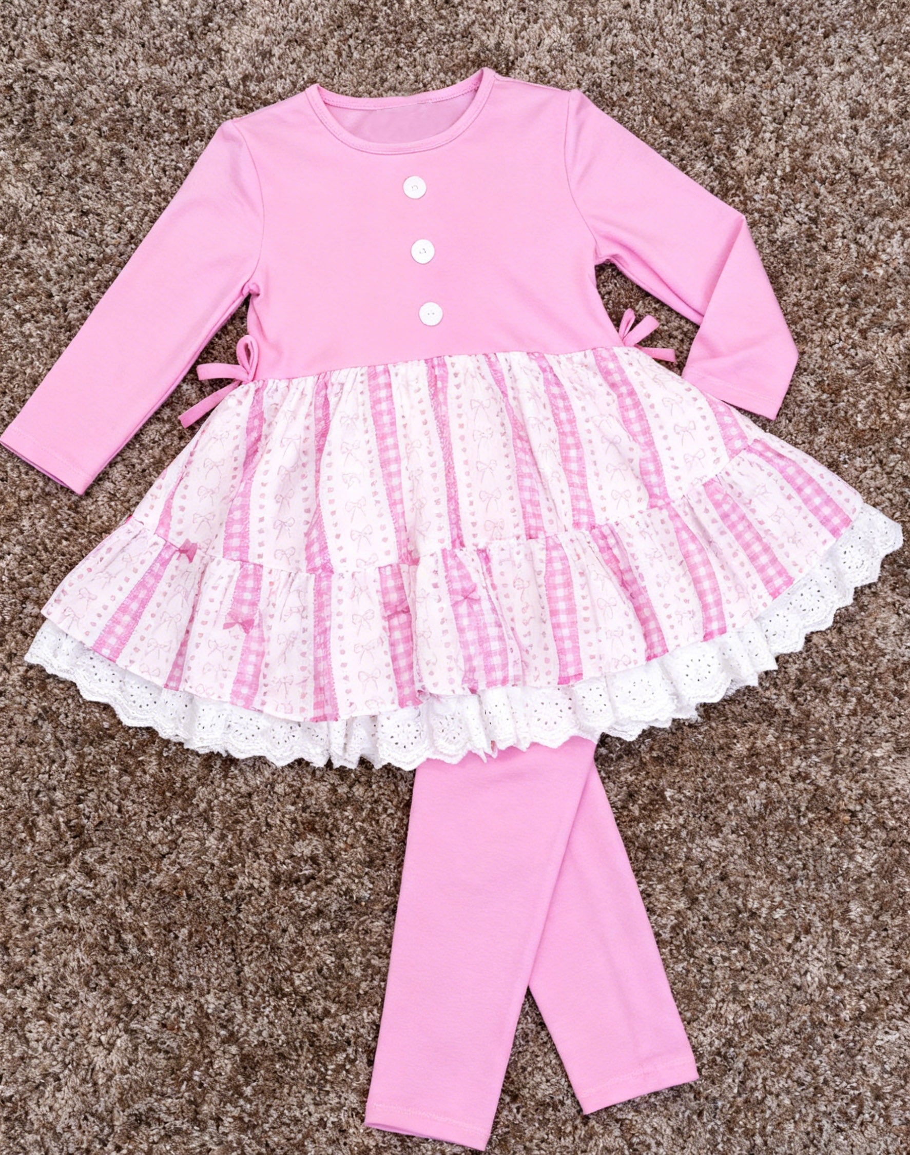 11.22 GLP3194 Pre order No Moq Baby Girls Pink Bows Hearts Stripes Button Tunic Leggings Valentines Sets