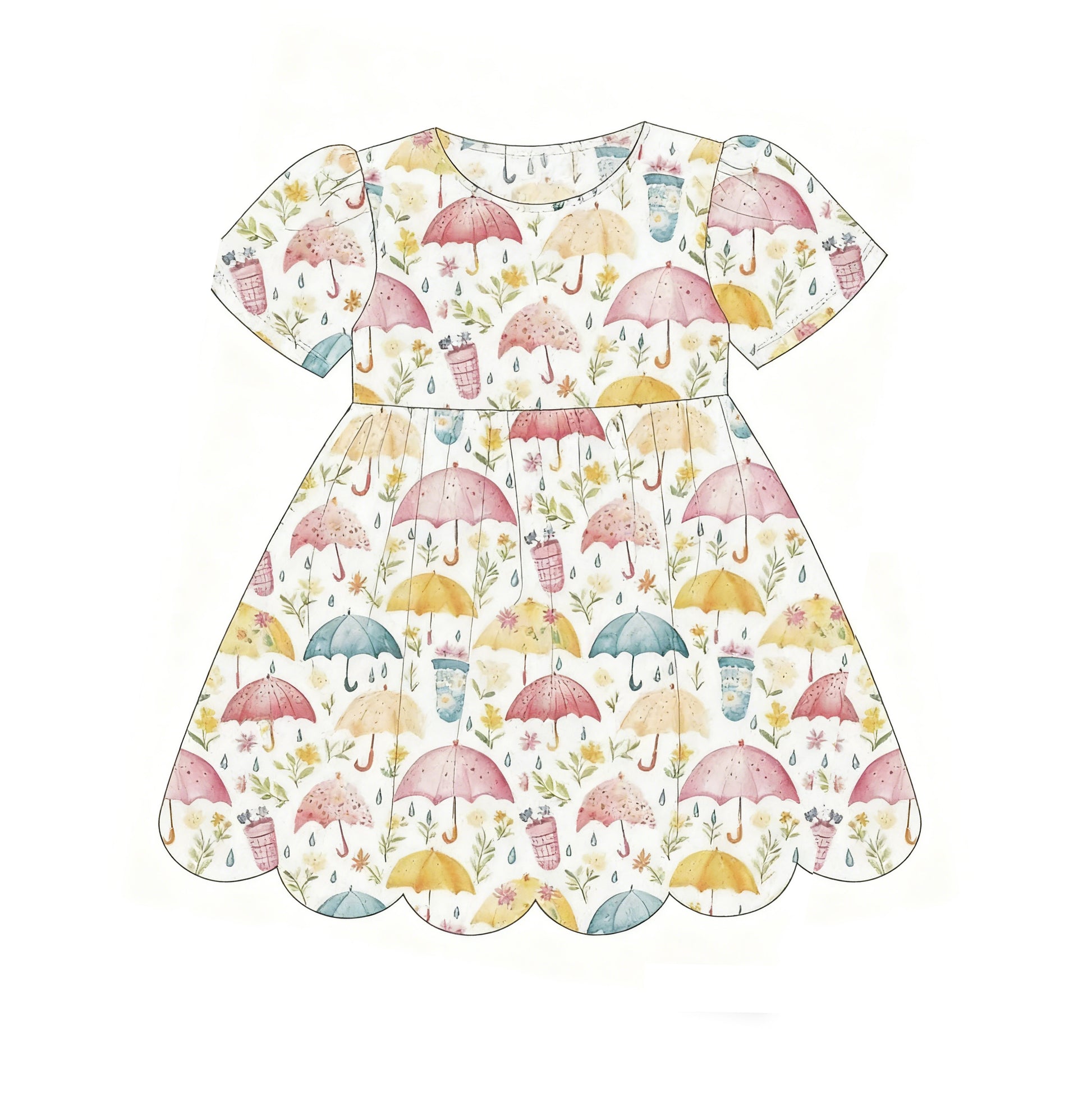11.22 GSD3225 Pre order No Moq Baby Girls Short Sleeve Flowers Umbrella Ruffle Knee Length Dresses