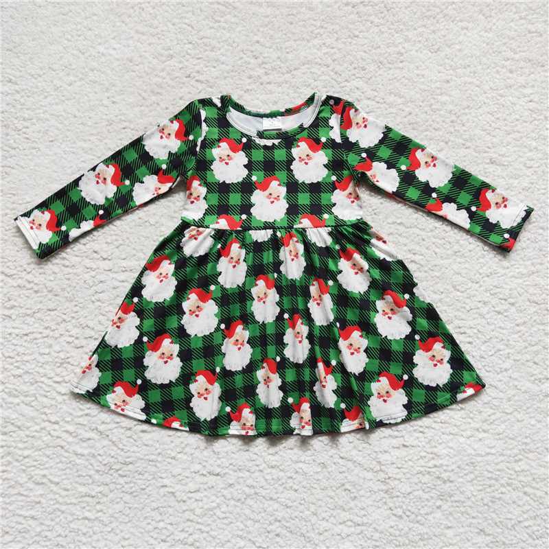 11.24 RTS NO MOQ (In stock)GLD0262 Baby Girls Christmas Green Plaid Santa Knee Length Dresses