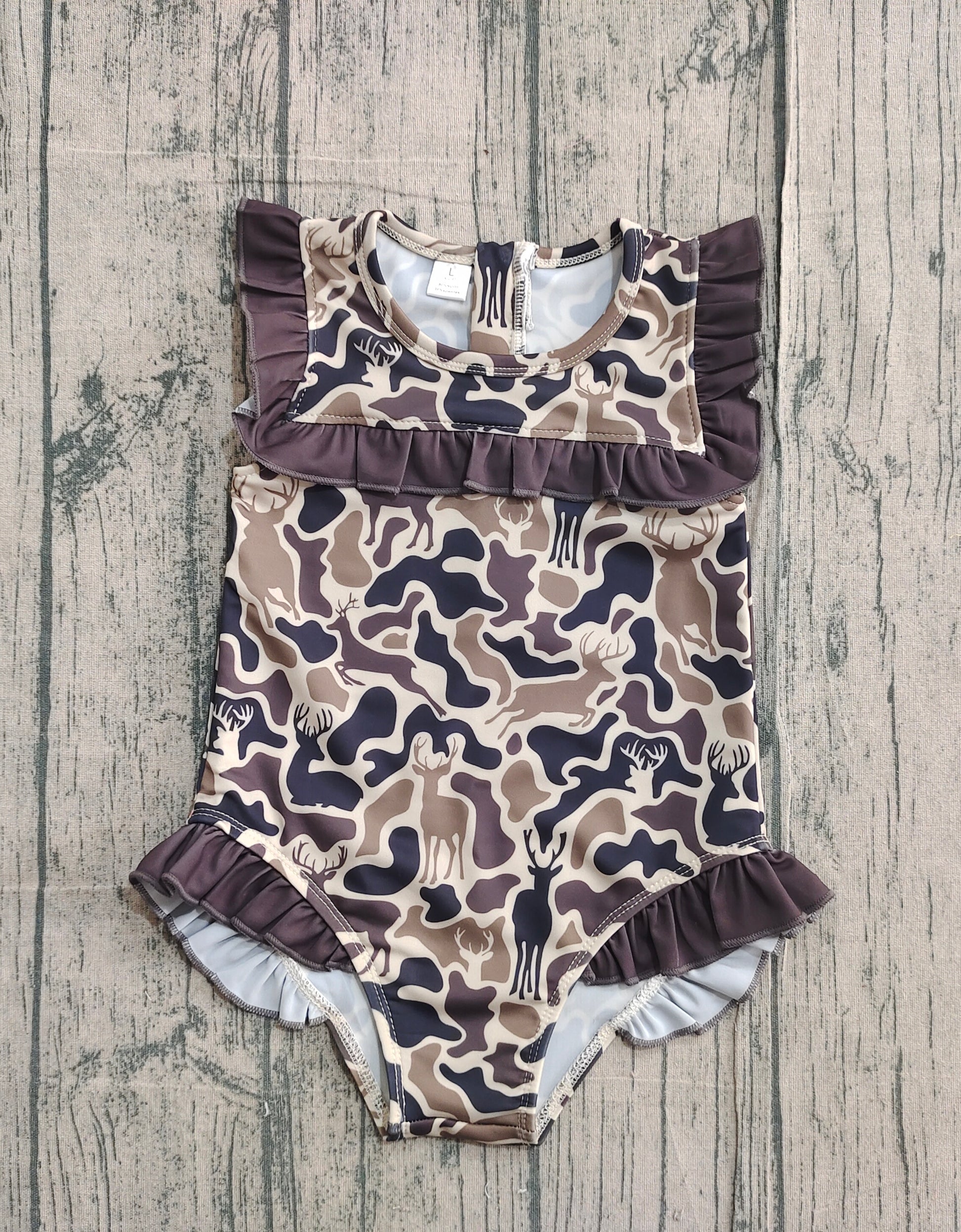 11.24 S0597 Sample No Moq Baby Girls Duck Brown Deer Camo Ruffle Swimsuits