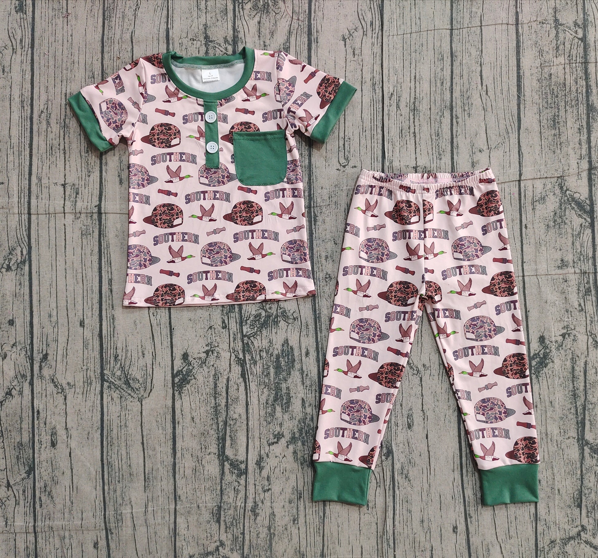 11.25 BSPO0597 Smple No Moq Baby Boys Camo Hats Ducks Pocket Top Pants Southern Clothes Sets