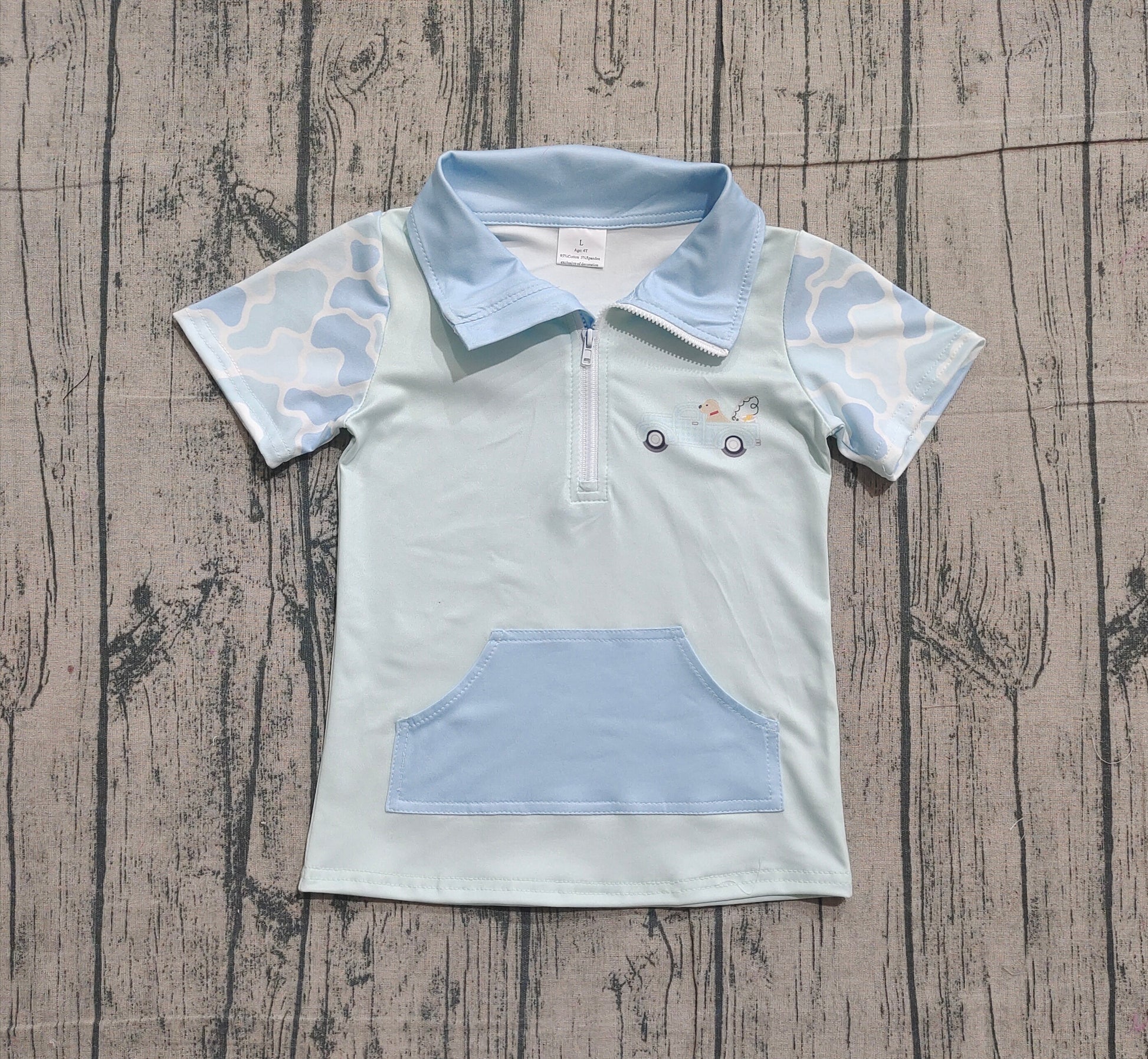 11.26 BT1534 Sample No Moq Baby Boys Light Blue Camo Short Sleeve Fishing Zipper Pockets Hunting Pullovers Top