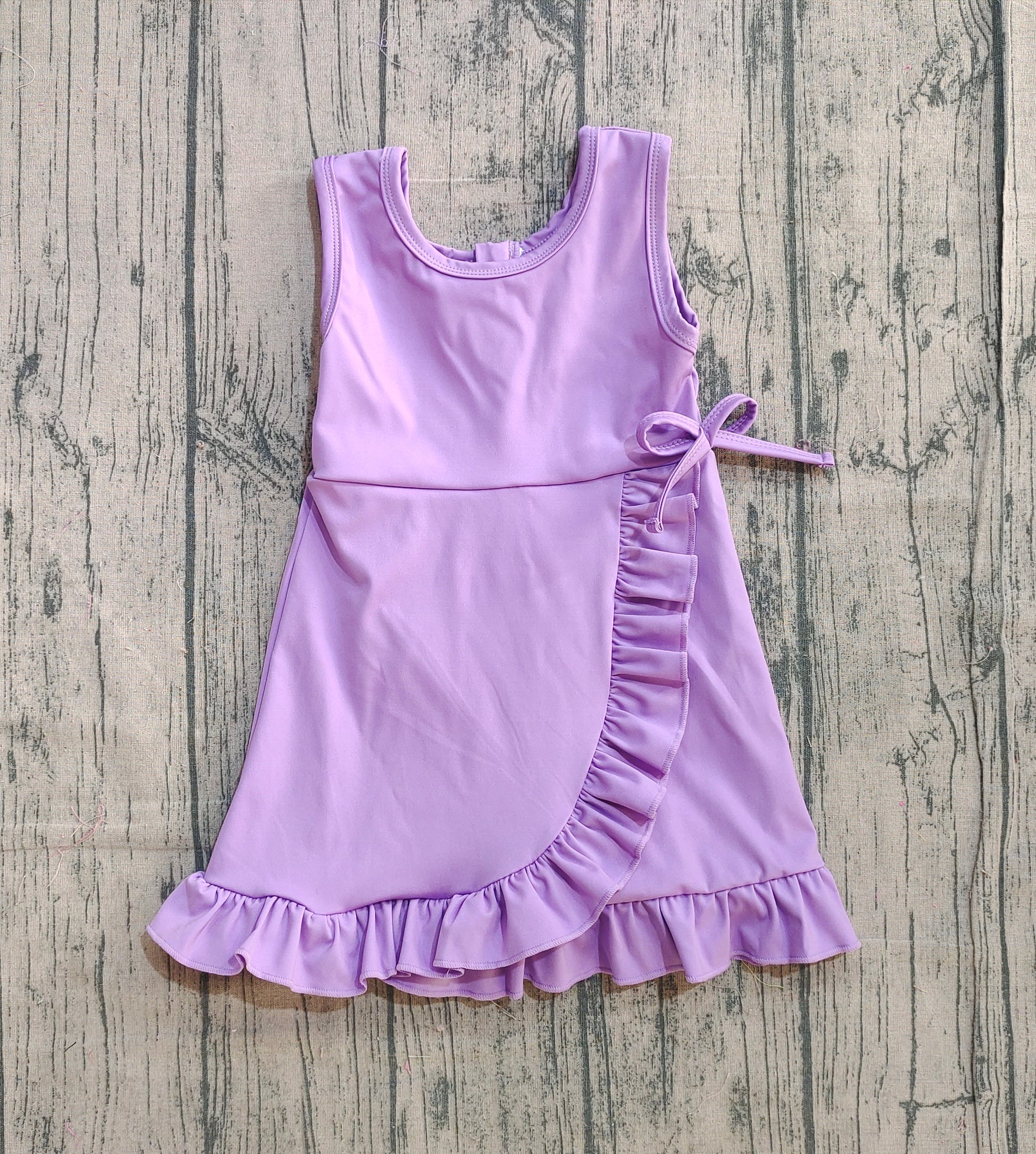11.27 GSD3036 Sample No Moq Yoga fabric Baby Girls Purple Sleeveless Yoga Shorts Ruffle Knee Length Dresses
