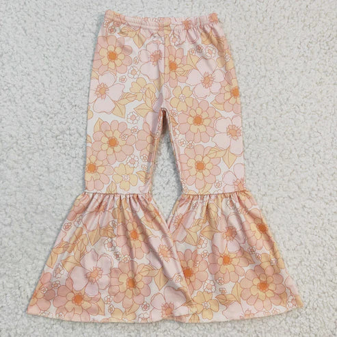 11.3 RTS Sibling Baby Girls Thanksgiving Fall Flowers Pumpkins Bell Bottom Pants