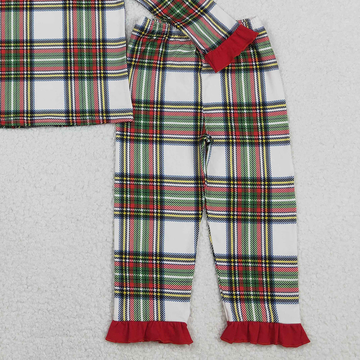11.4 RTS NO MOQ (In stock)GLP2829 Baby Girls Green Red Checked Top Ruffle Pants Christmas Pajamas Sets