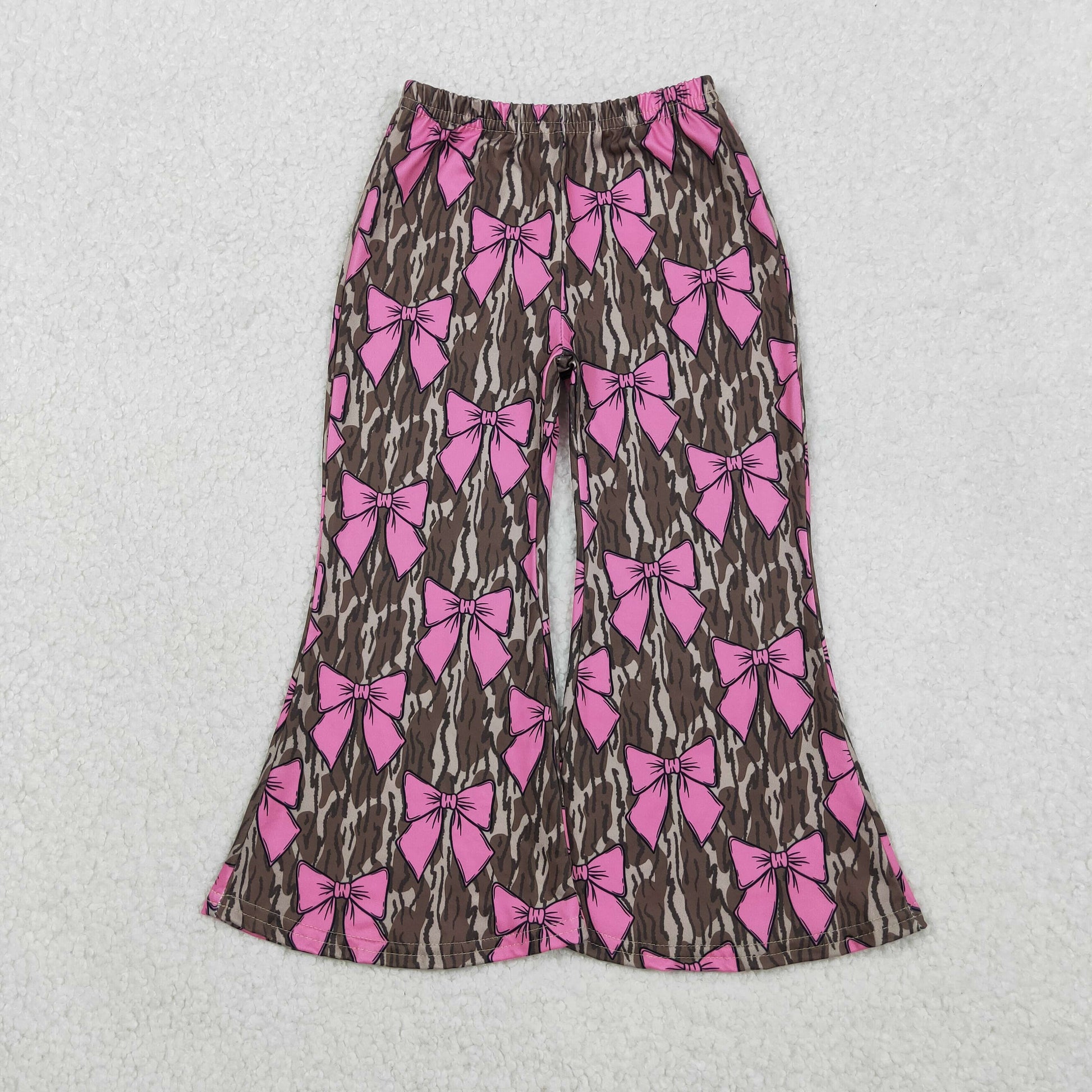 11.4 RTS NO MOQ (In stock)P0896 Baby Girls Olive Camo Pink Bows Bell Bottom Pants