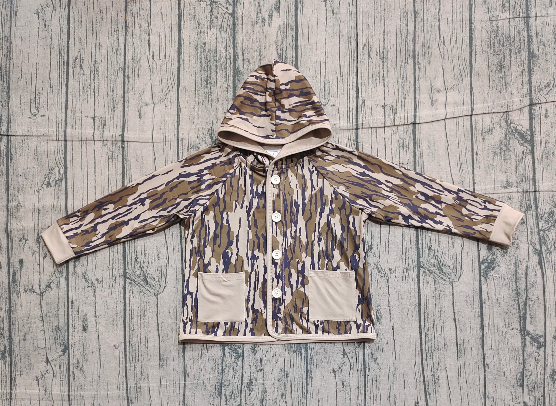 11.5 BT1441 Sample No Moq Baby Boys Brown Leaves Camo Button Pockets Hooded Jackets Tops