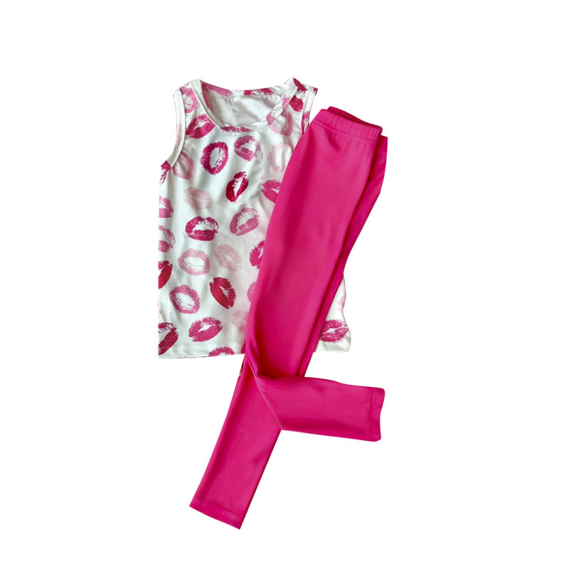 11.5 GSPO2191 Pre order No Moq Baby Girls Pink Mouths Vest Top Leggings Pant Valentine Clothes Sets