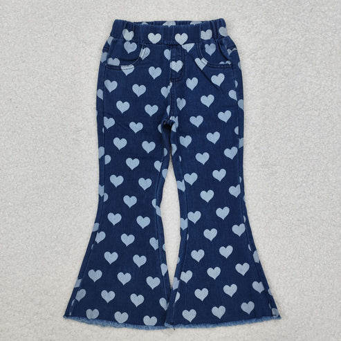 11.6 RTS Sibling Baby Girls Hearts Flowers Bell Bottom Denim Pants Jeans