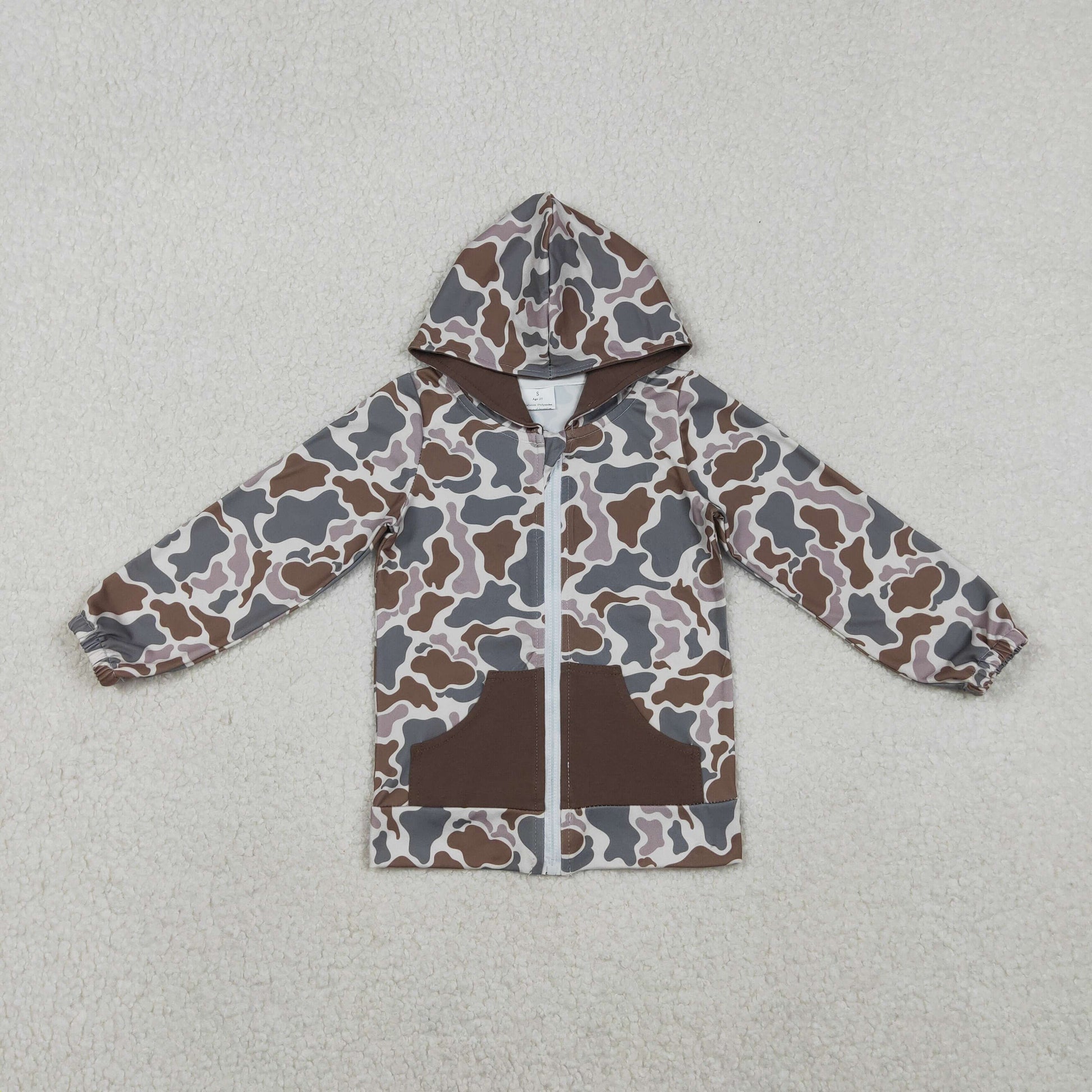 11.7 RTS NO MOQ (In stock)BT1376 Baby Boys Brown Camo Pockets Zipper Southern Hoodies Jackets Top