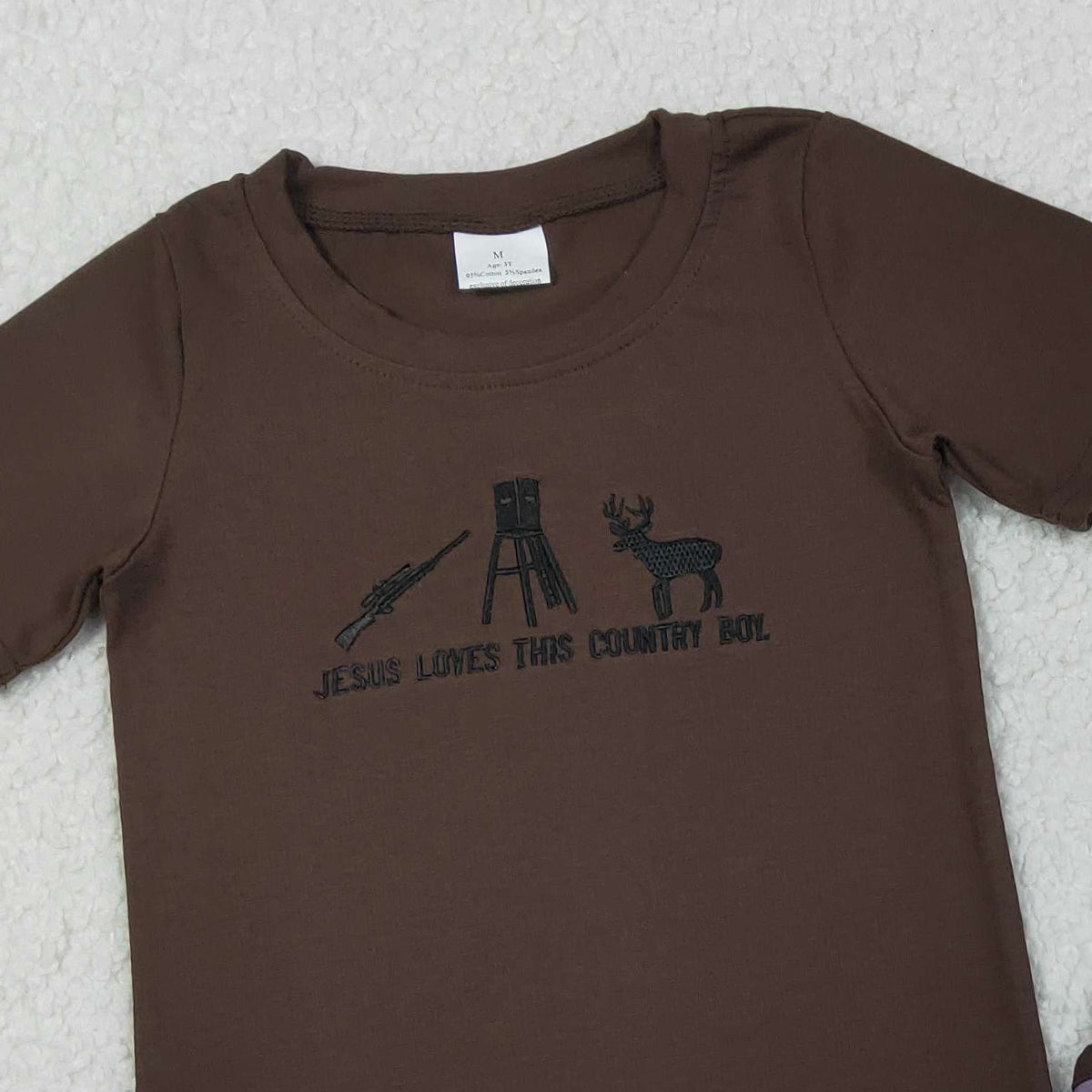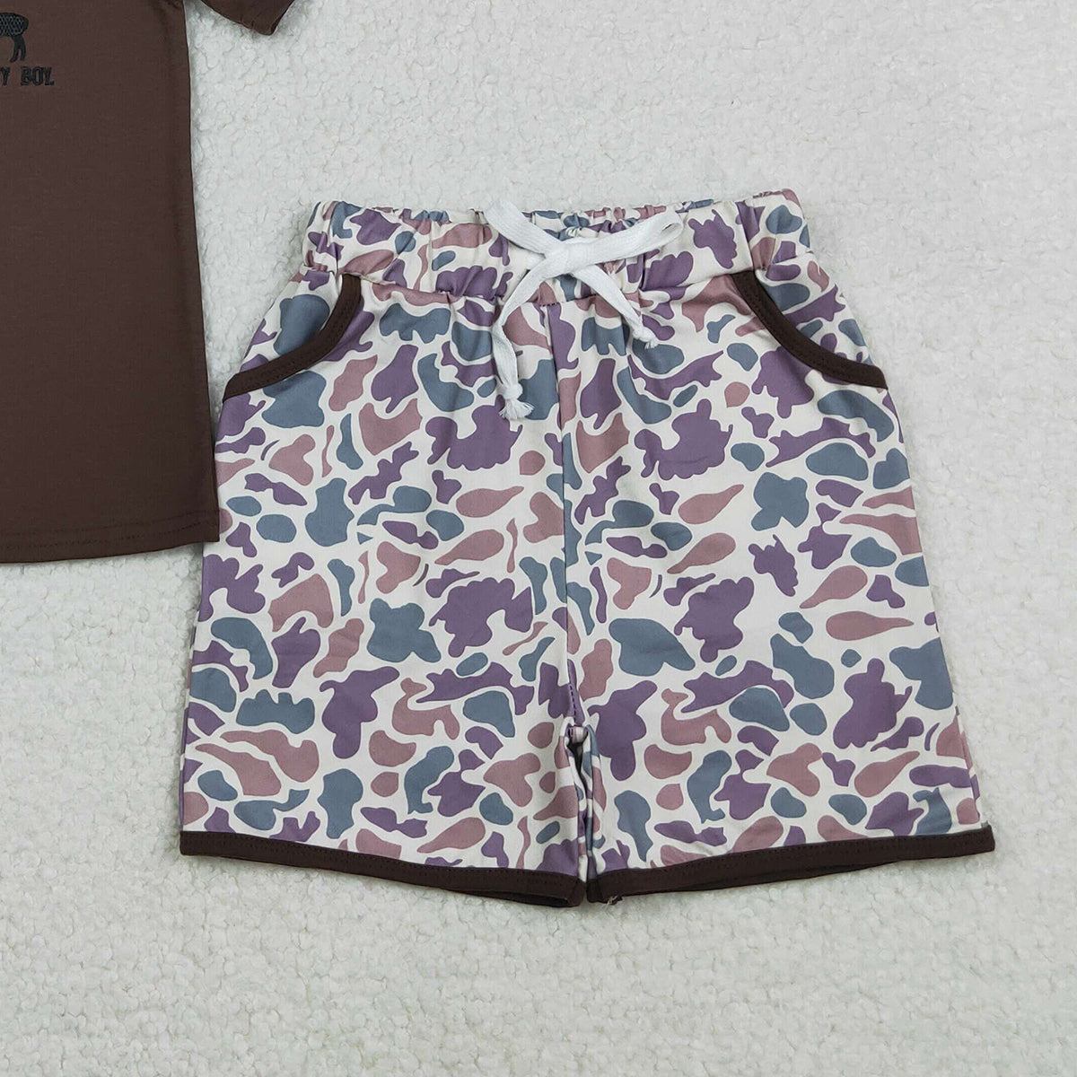 11.8 RTS NO MOQ (In stock)BSSO1562 Embroidery Love This Country Boy Deer Camo Pockets Shorts Hunting Clothes Sets