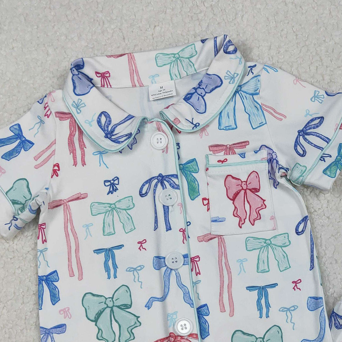 11.8 RTS NO MOQ (In stock)GSSO2217 Baby Girls Colorful Bows Buttons Shirts Top Shorts Pajamas Sets