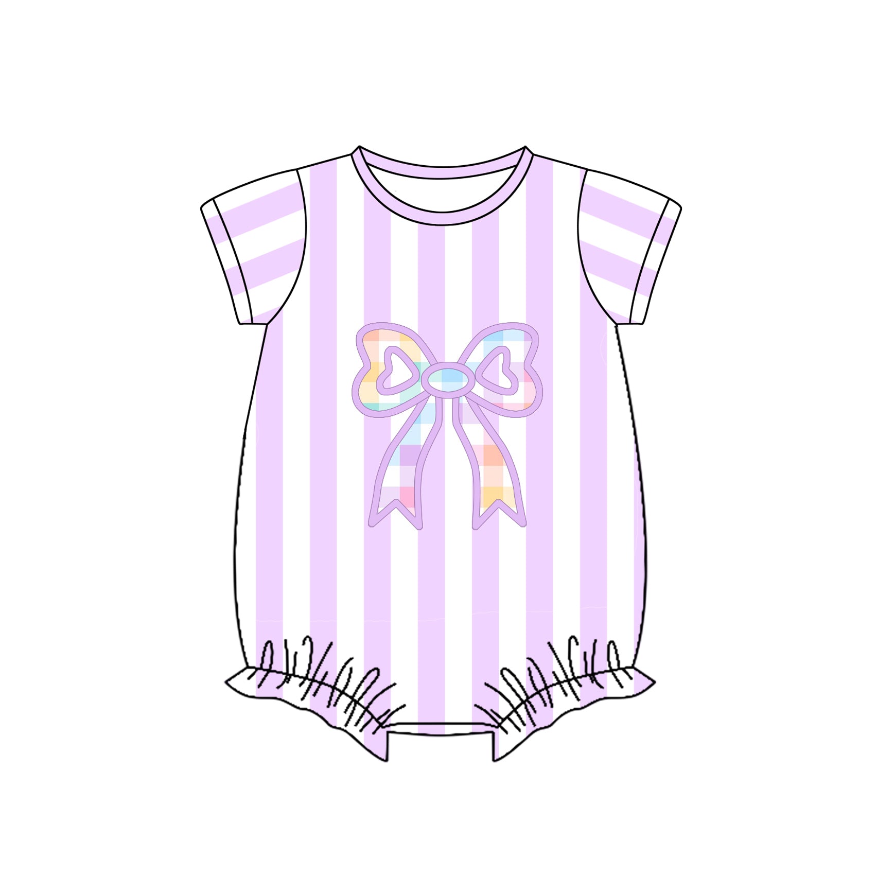 11.8 SR3514 Pre Order No moq Baby Girls Short Sleeve Pink Stripe Bows Ruffle Rompers
