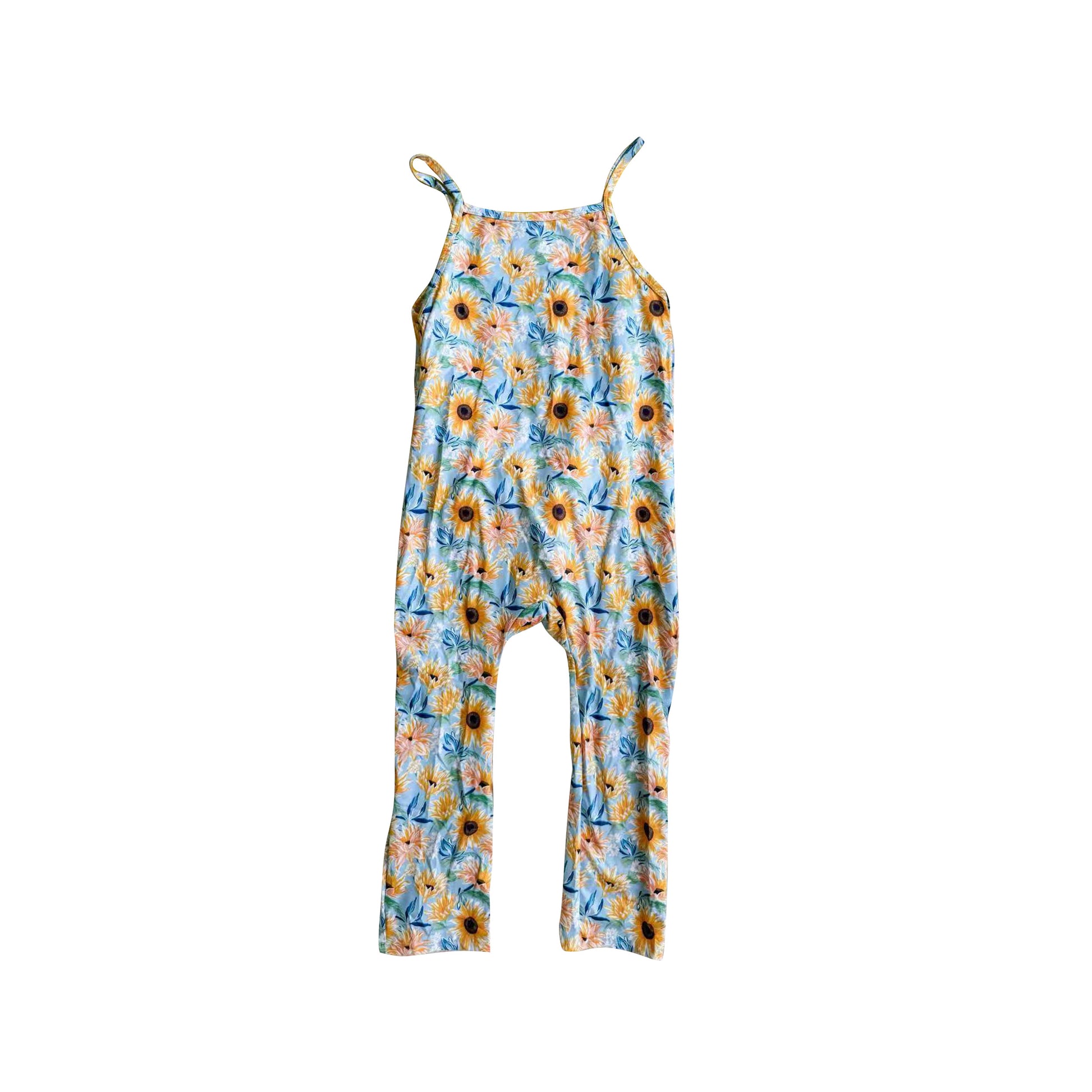 11.8 SR3517 3XS-6XL Pre order No Moq Baby Girls Sunflowers Strap Pant Jumpsuits