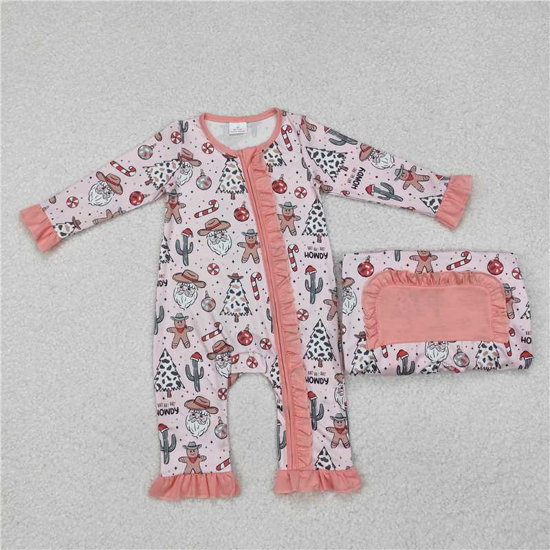 12.11 RTS NO MOQ (In stock)Matching Christmas LR1675 Baby Infant Girls Christmas Howdy Western Zip Rompers