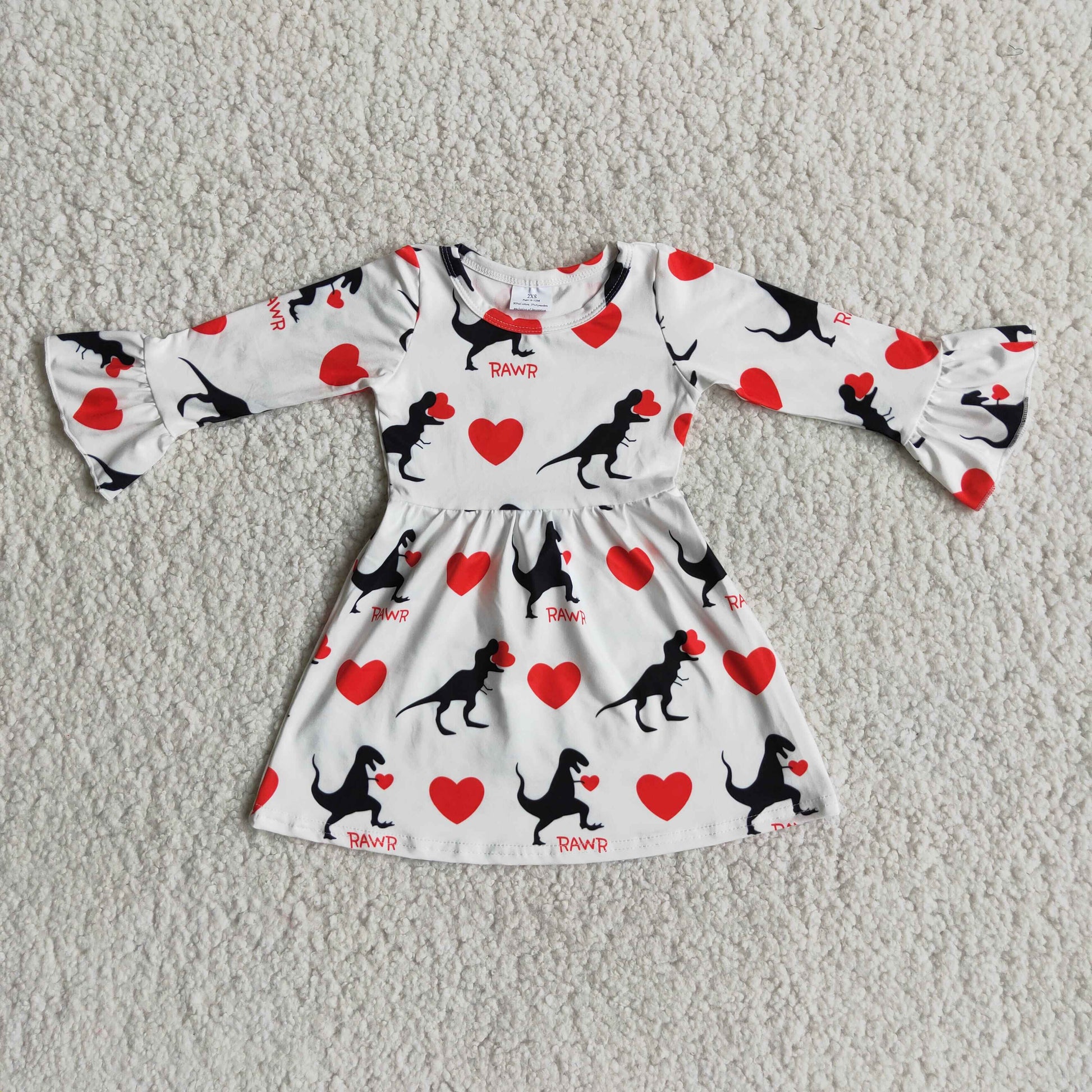 12.13 6 A23-1 RTS No Moq Promotion Baby Girls dinosaur heart valentine's day dresses